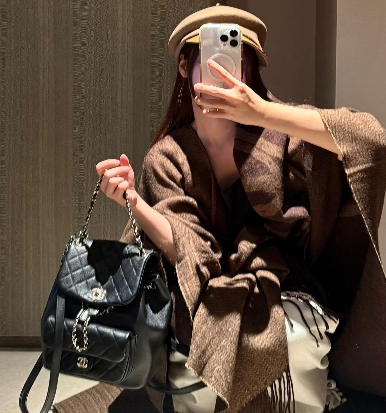 • Chanel Lambskin Quilted Large Duma Drawstring Backpack