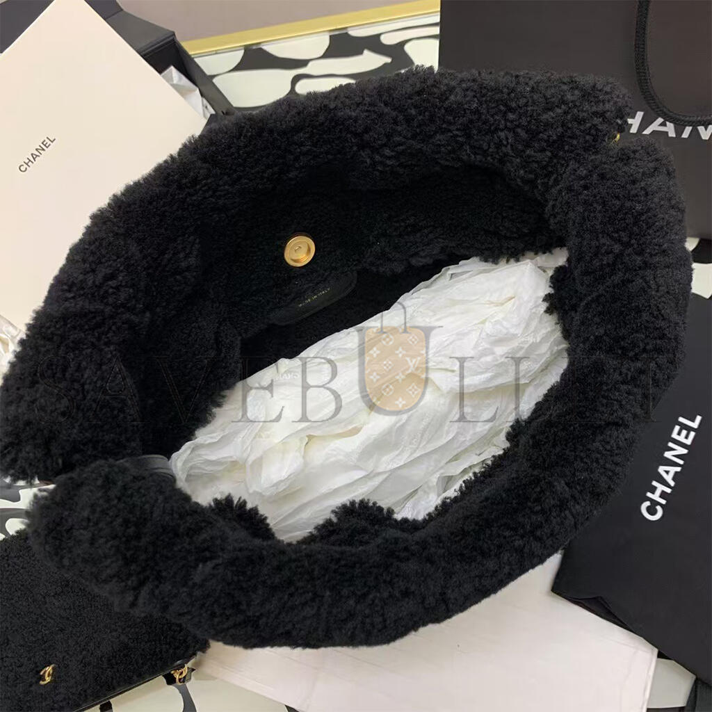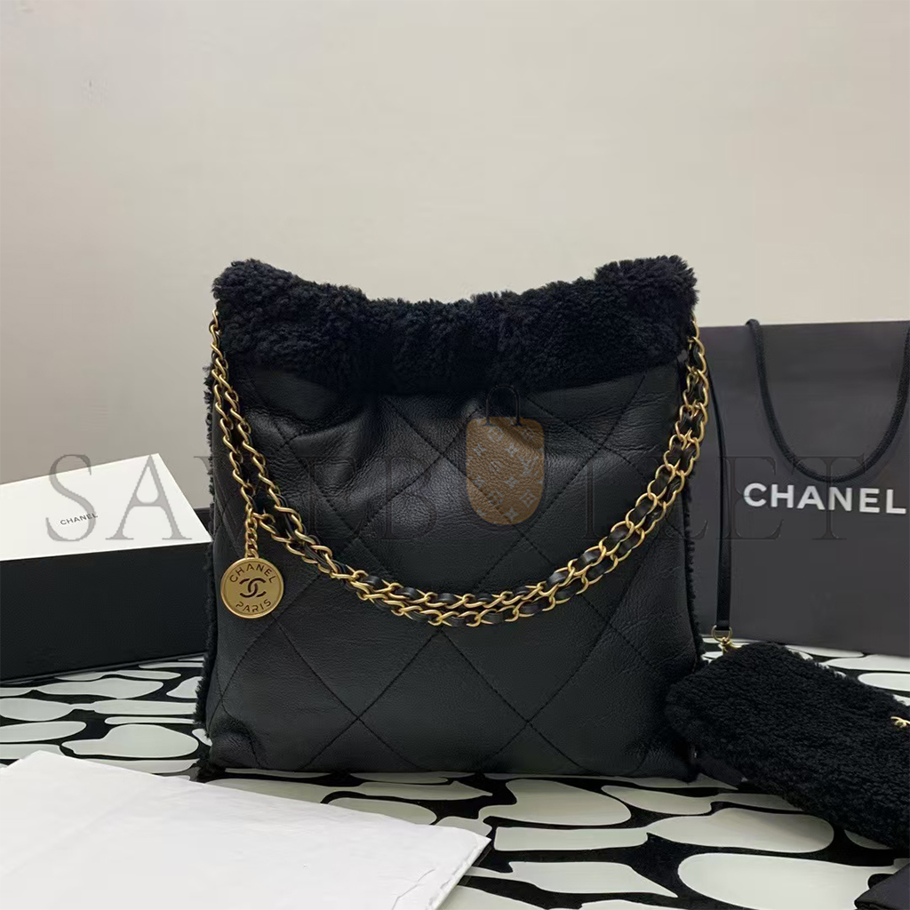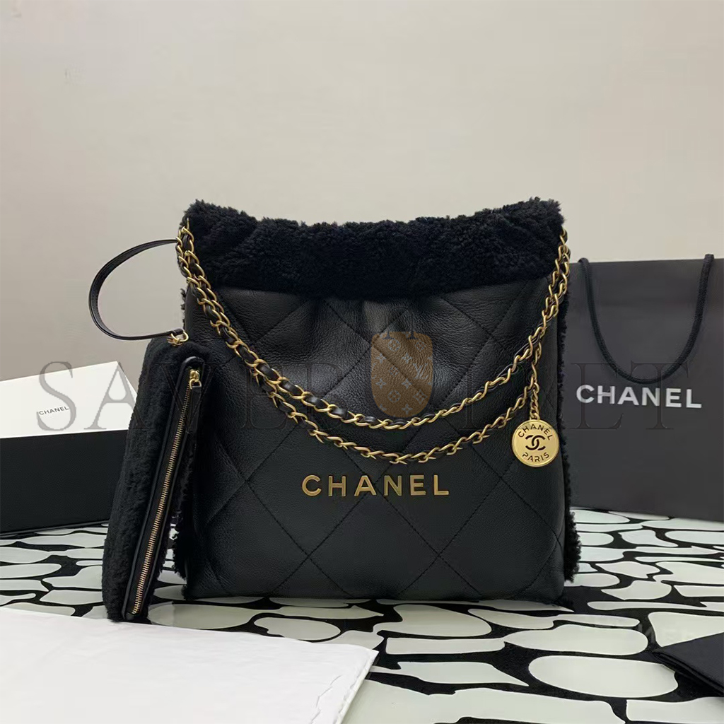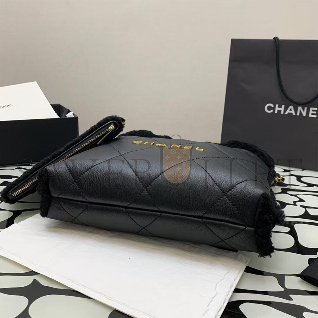 CHANEL MASTER LAMBSKIN SHEARLING QUILTED SMALL CHANEL 22 BLACK AS3260 (30*30*8cm)