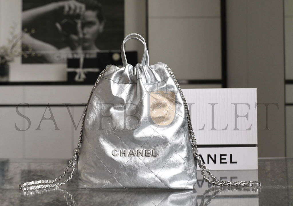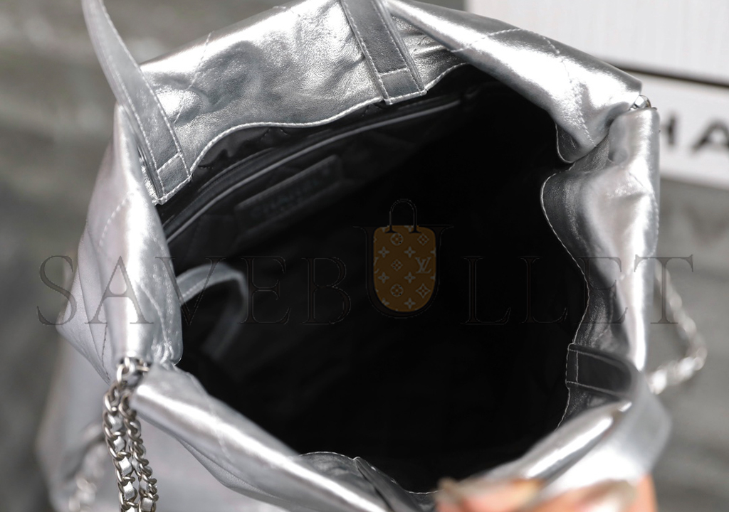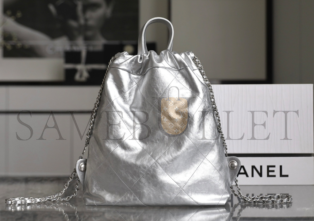 • CHANEL MASTER METALLIC CALFSKIN QUILTED CHANEL 22 BACKPACK SILVER (34*29*10.5cm)