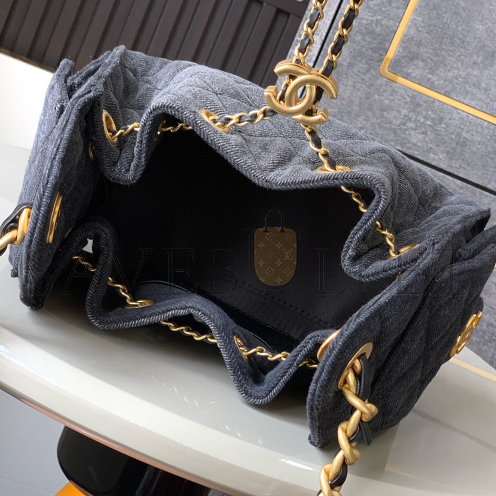 • CHANEL 25 MINI HOBO BAG BLACK DENIM AS5631(22*20*12.5cm)