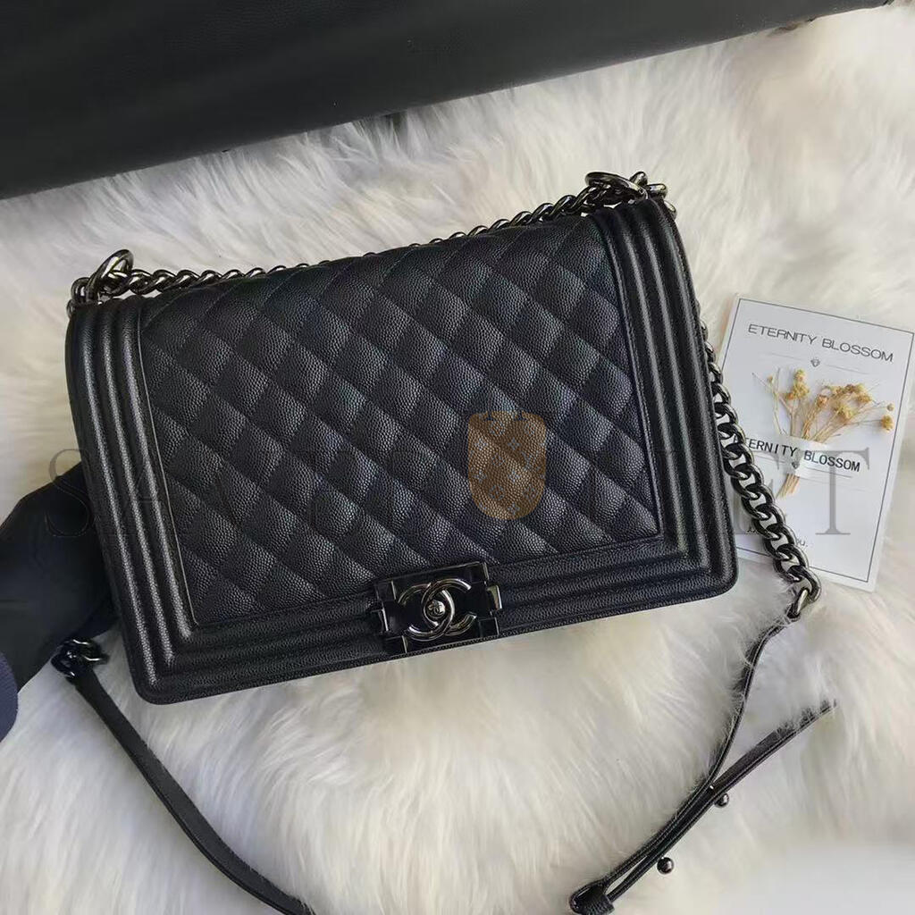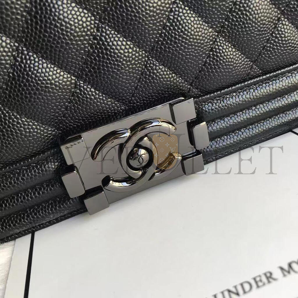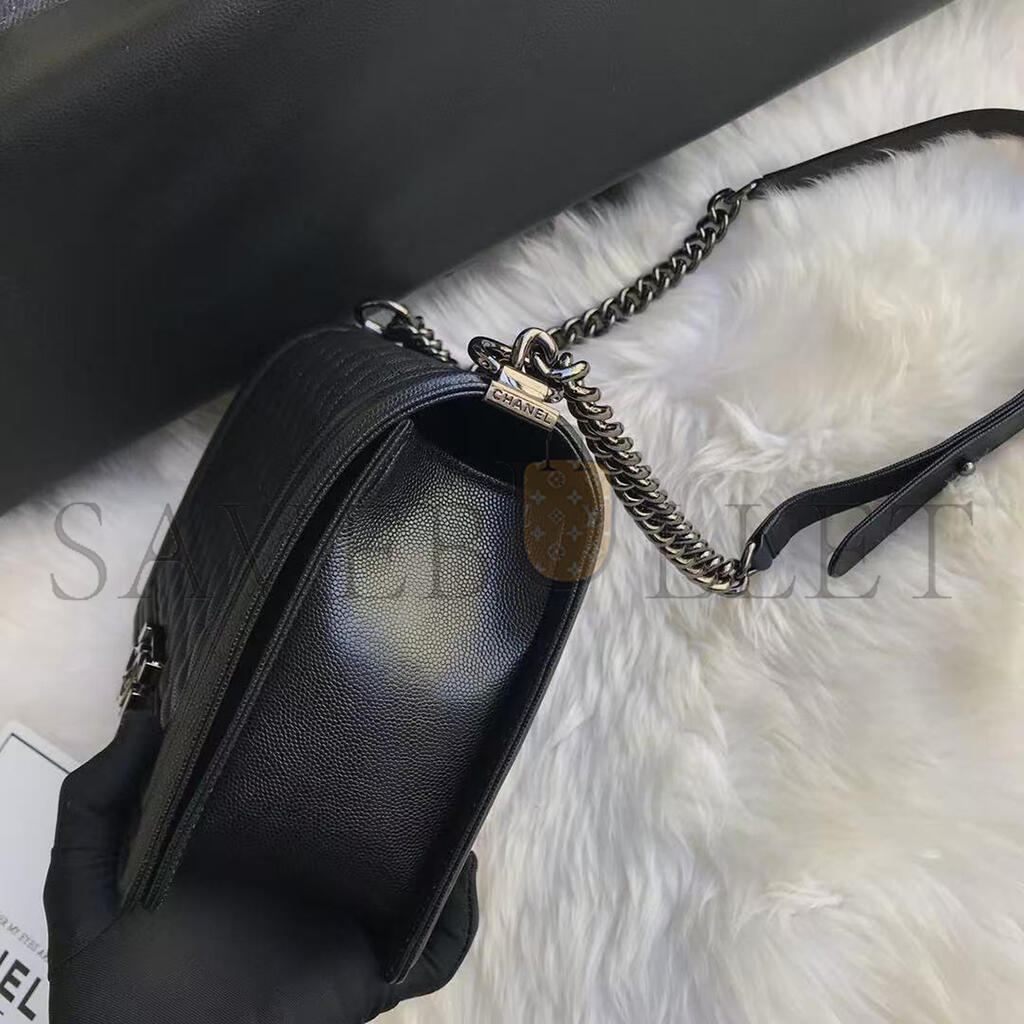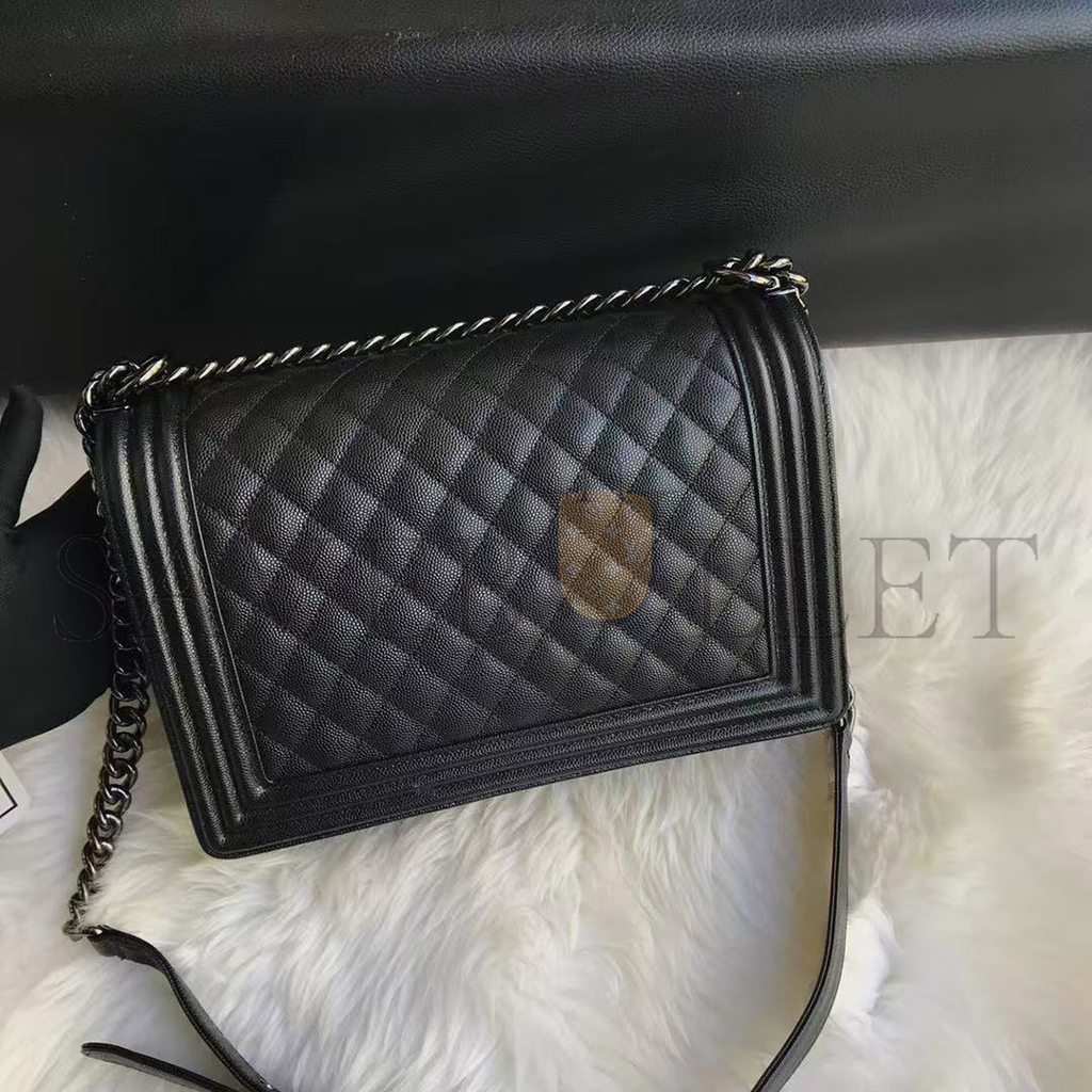 CHANEL CAVIAR LARGE QUILTED BOY FLAP BLACK A92193 Y83338 94305 (28*17.5*7.5cm)