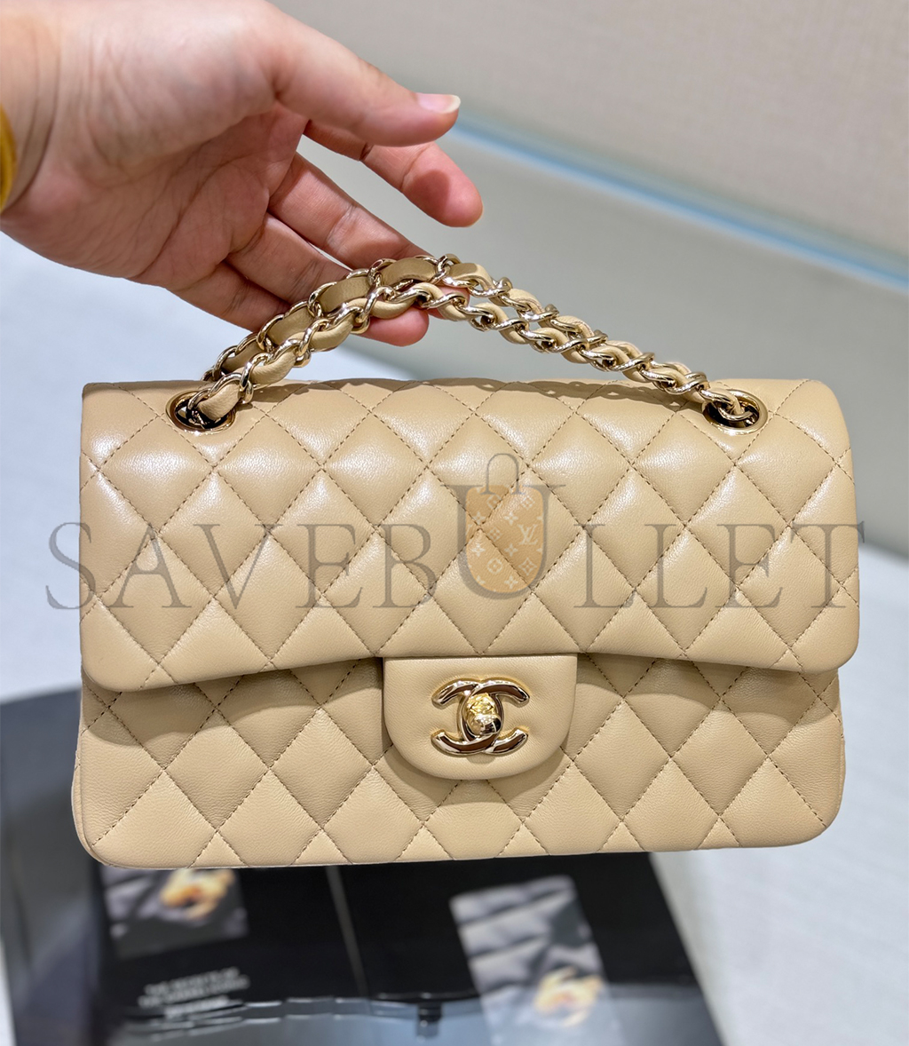 CHANEL BEIGE CLASSIK DOUBLE FLAP BAG (23*14*6cm)