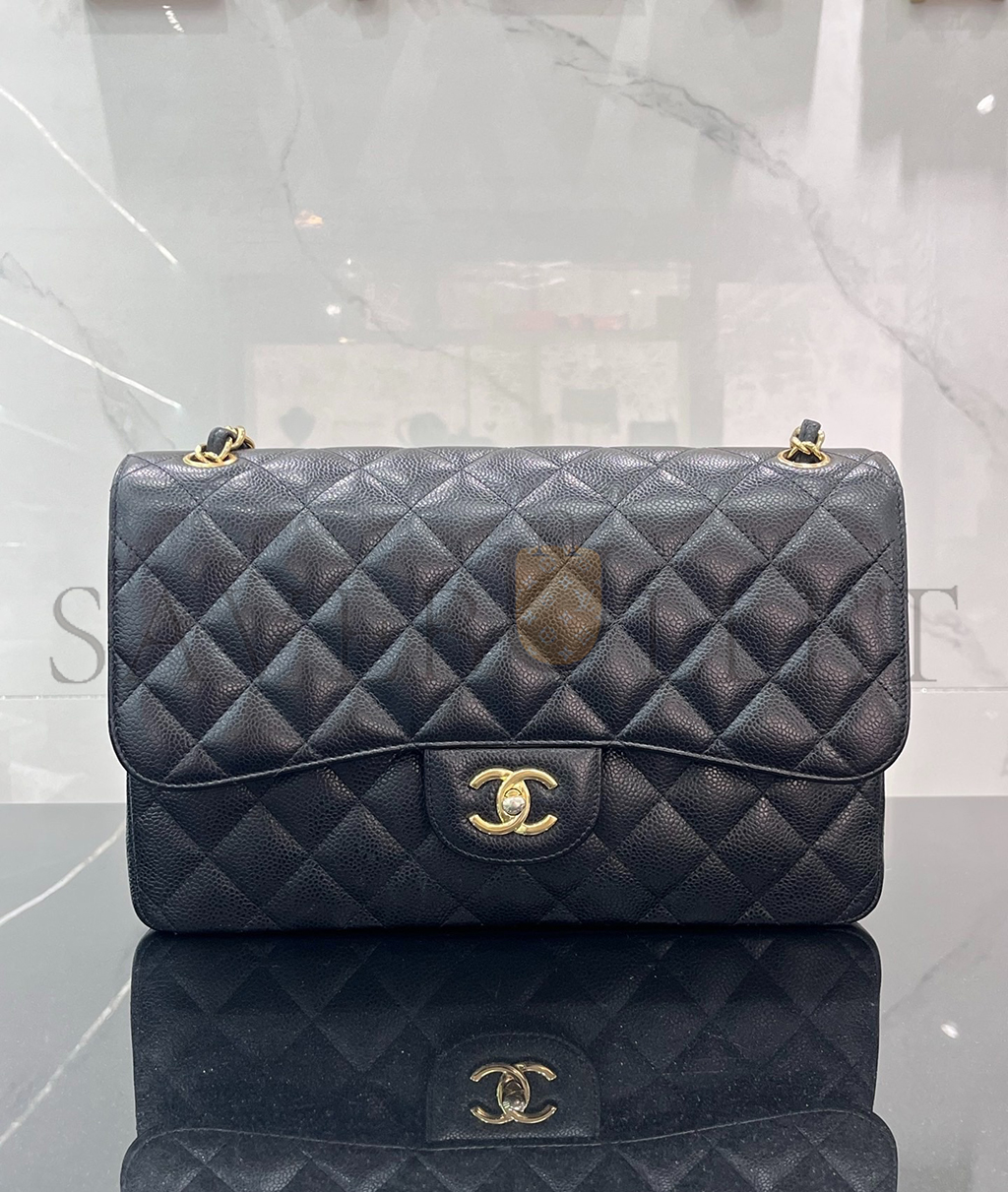• CHANEL CAVIAR QUILTED JUMBO CLASSIC DOUBLE FLAP BAG 1256173 (30*20*10cm)