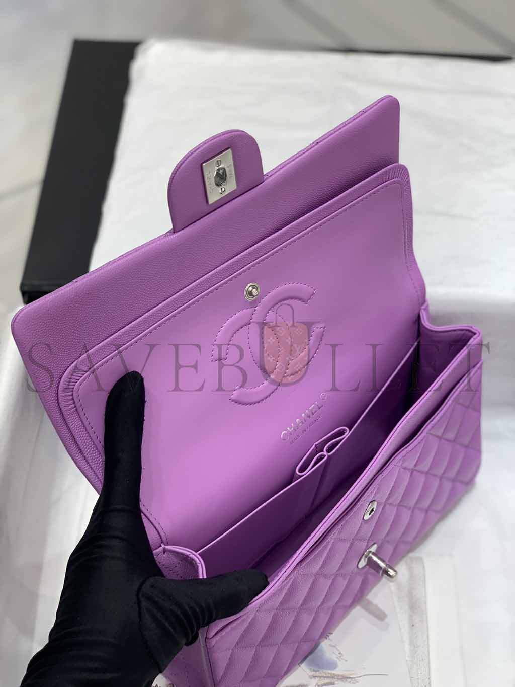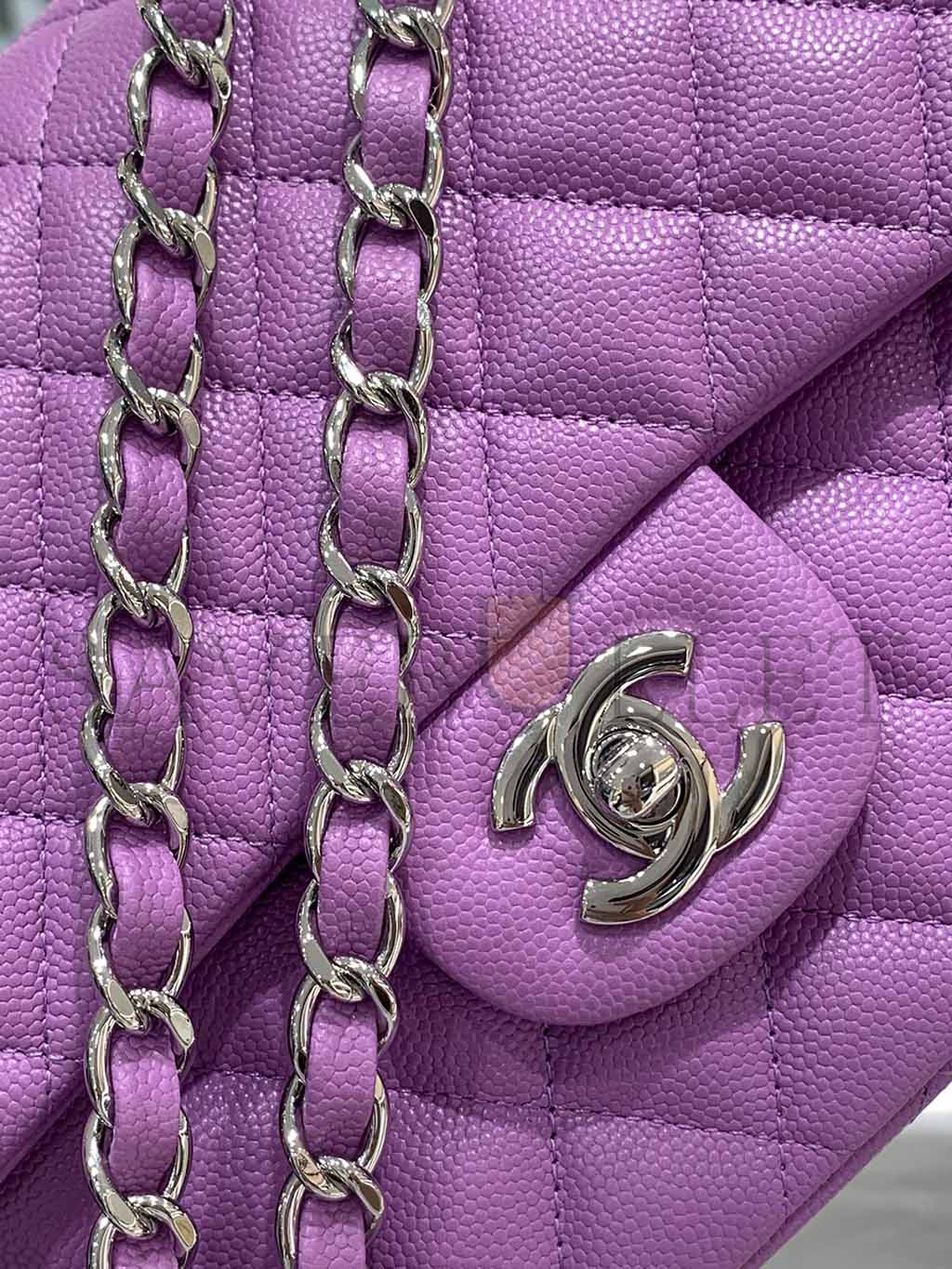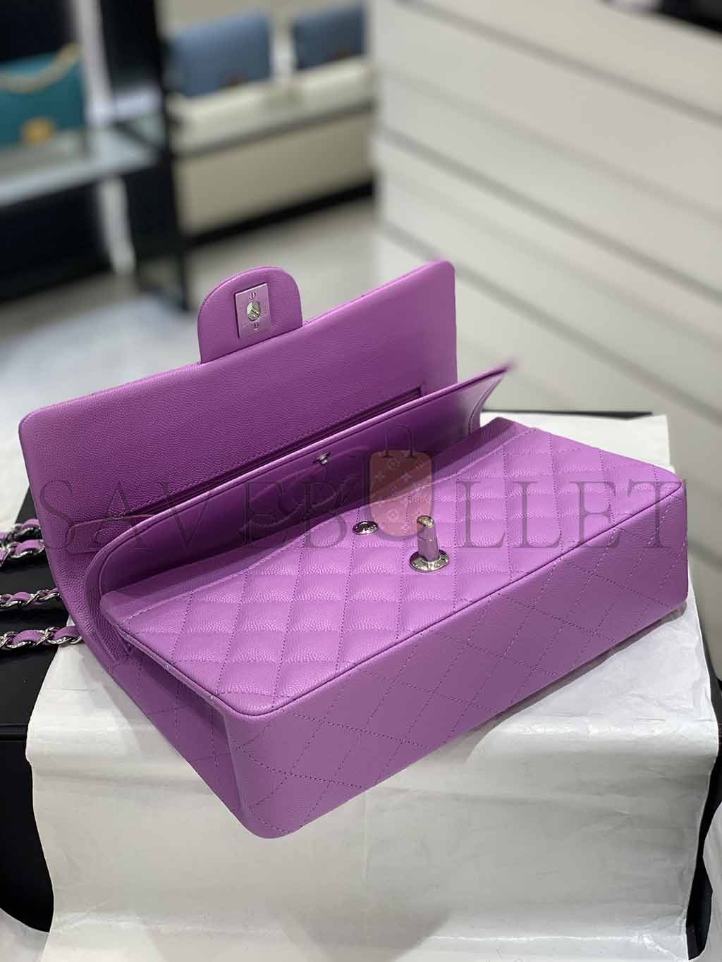 CHANEL CAVIAR QUILTED MEDIUM DOUBLE FLAP PURPLE SILVER BUCKLE (25.5*15.5*6.5cm)