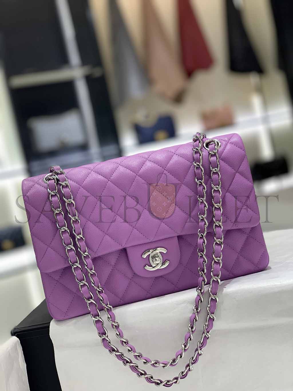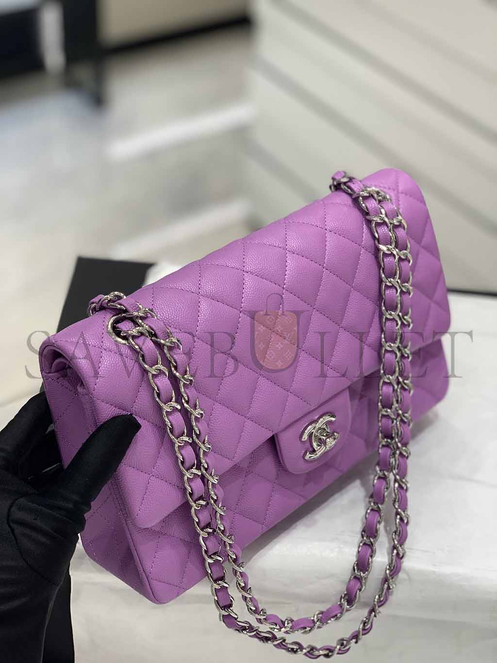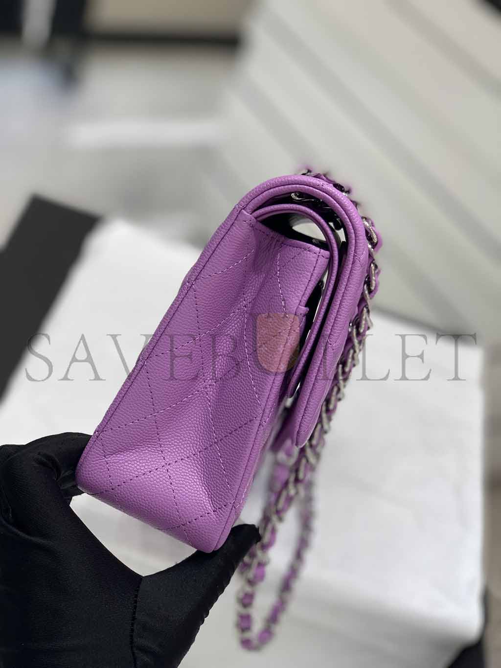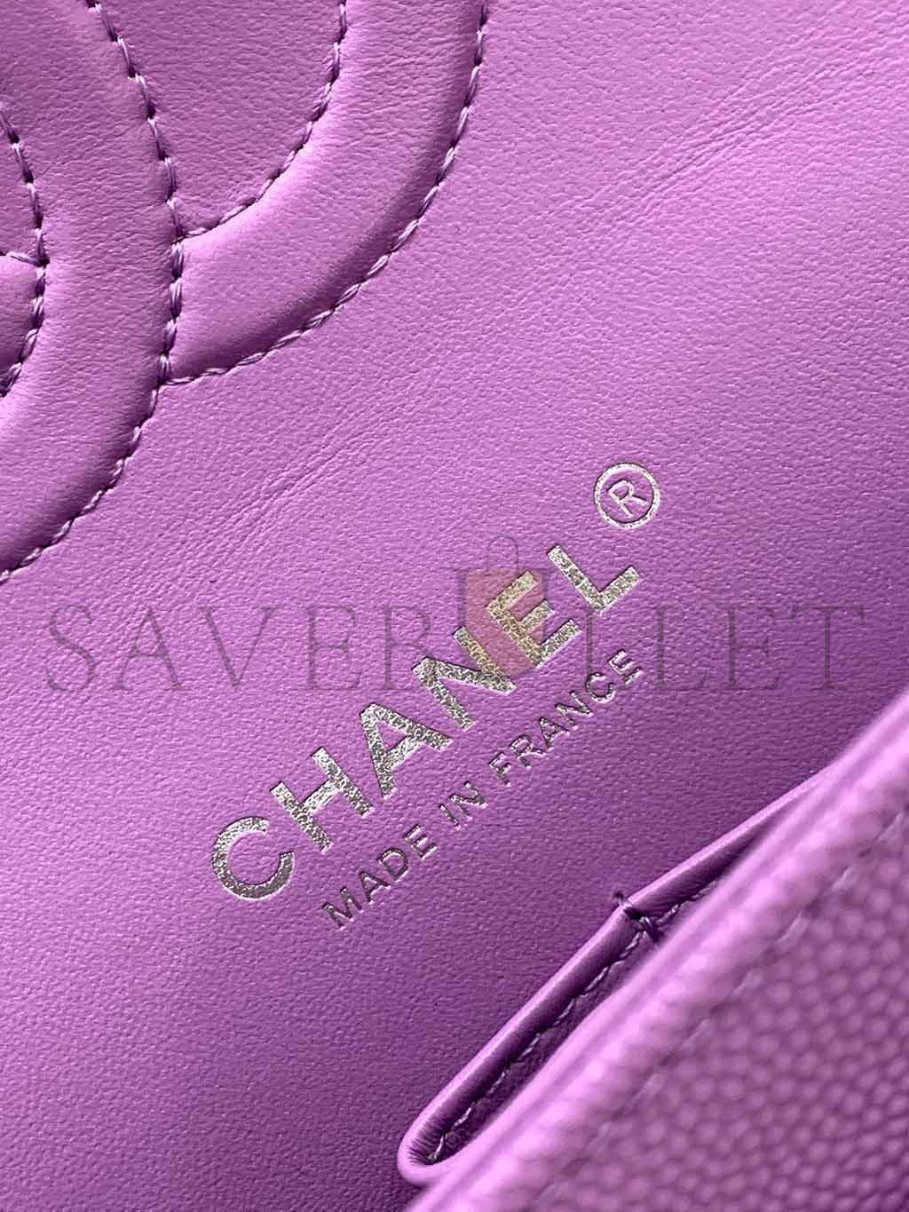 • CHANEL CAVIAR QUILTED MEDIUM DOUBLE FLAP PURPLE SILVER BUCKLE (25.5*15.5*6.5cm)