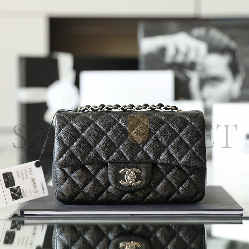 • CHANEL CLASSIC FLAP LARGE MINI BLACK COWHIDE CAVIAR A69900 (20*12.5*6cm)