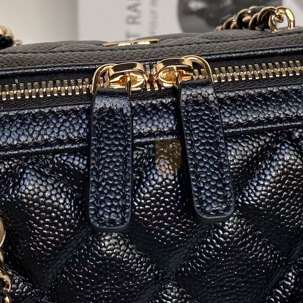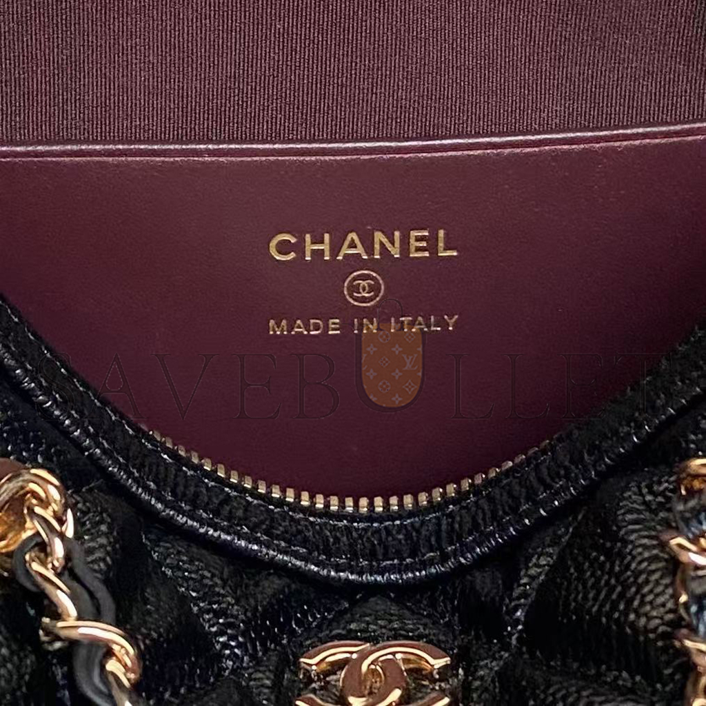 • CHANEL MINI TIMELESS CLASSIC BARREL BAG WITH CHAIN BLACK SHINY CAVIAR LIGHT GOLD HARDWARE AS0932 (18*13*10cm)