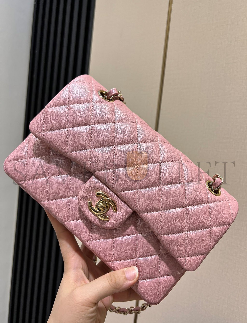 • CHANEL PINK CAVAIR LEATHER MEDIUM DOUBLE FLAP BAG A37586 (25*15.5*6.5cm)