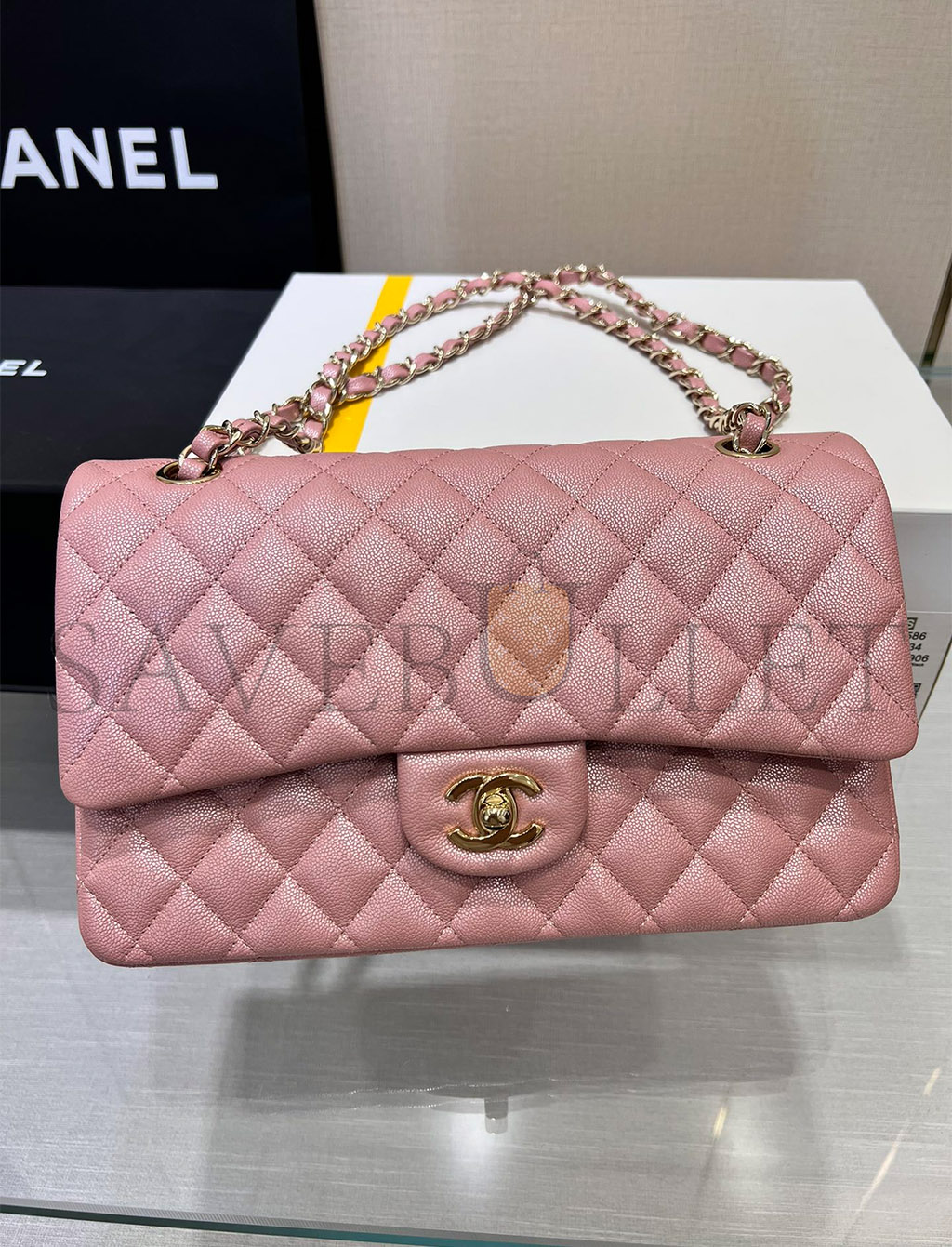 CHANEL PINK CAVAIR LEATHER MEDIUM DOUBLE FLAP BAG A37586 (25*15.5*6.5cm)