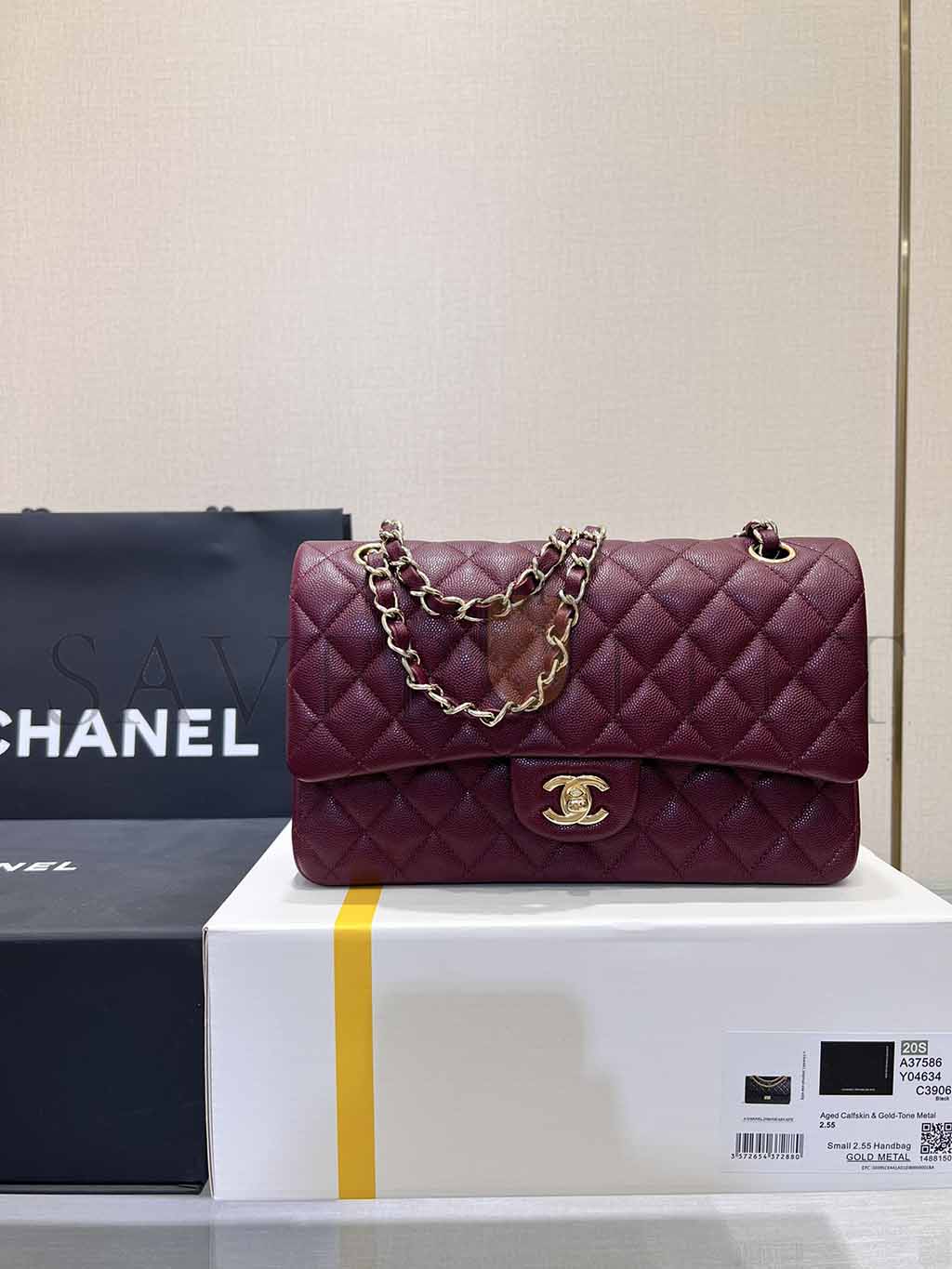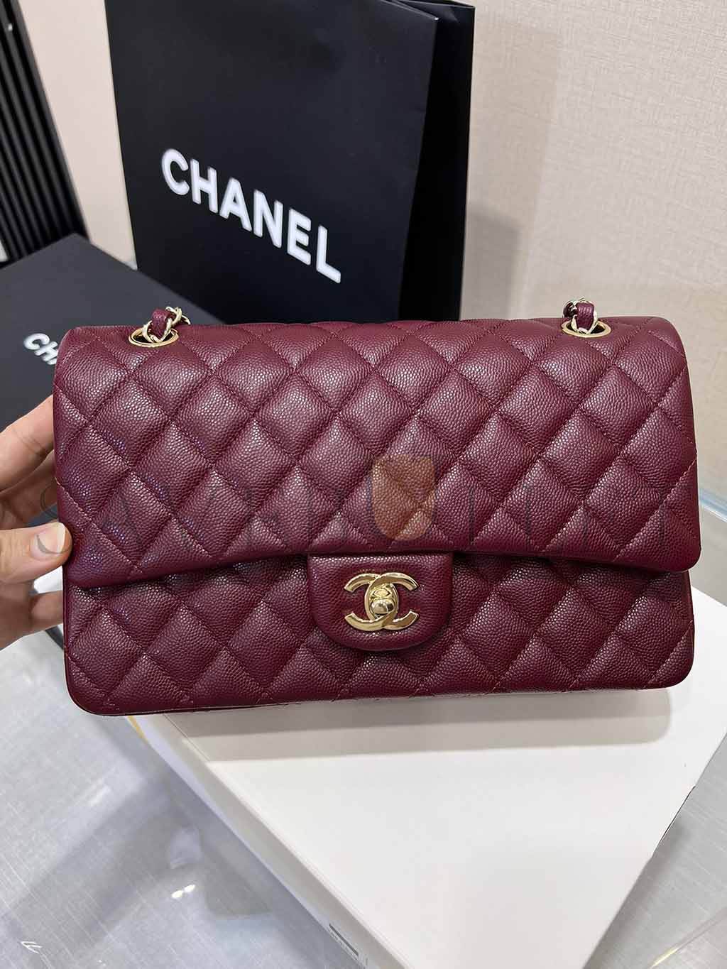 • CHANEL VINTAGE BURGUNDY WINE RED CAVIAR MEDIUM CLASSIC DOUBLE FLAP BAG A37586 (25.5*15.5*6.5cm)