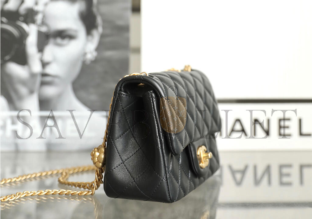 • CHANEL MASTER CAMELLIA ADJUSTABLE BUCKLE CHAIN FLAP BAG AS1786 (18*13*7cm)