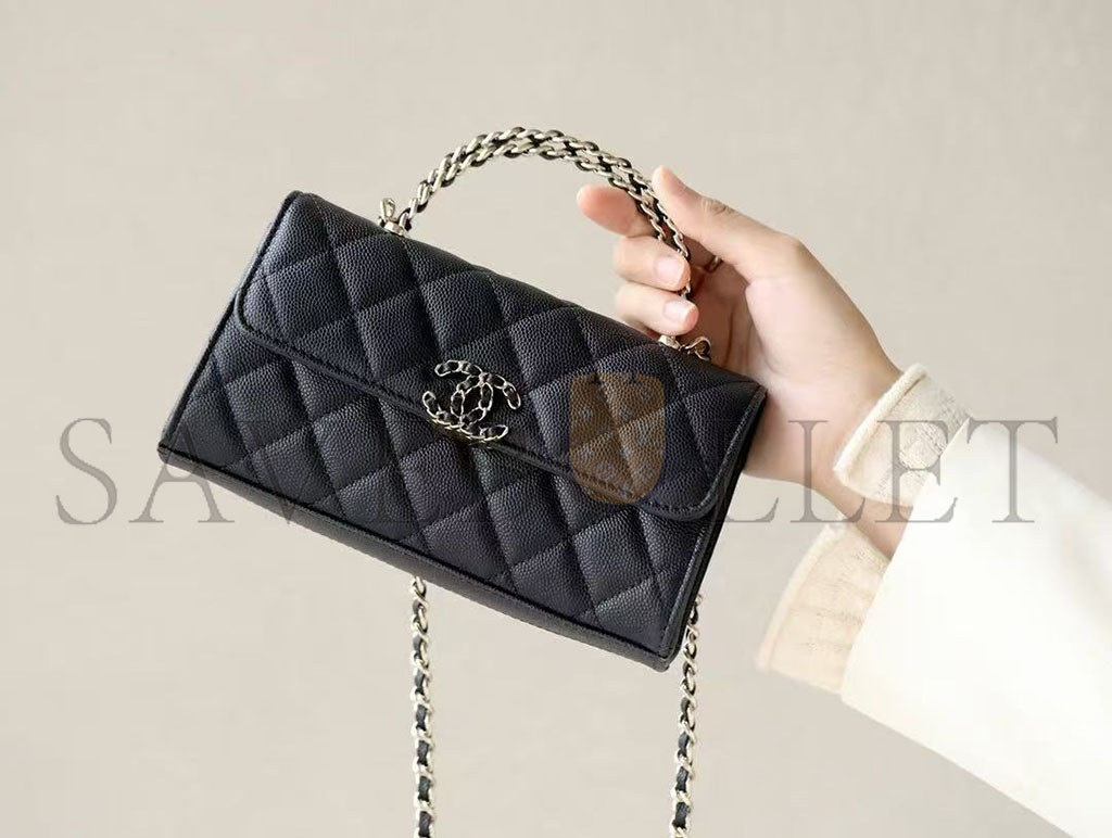 CHANEL MASTER CAVIAR QUILTED CHAIN TOP HANDLE WITH CHAIN BLACK (18*10*4cm)