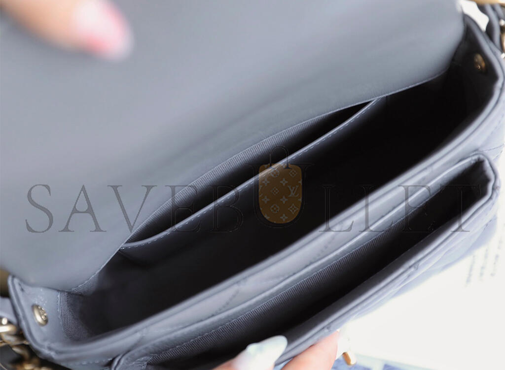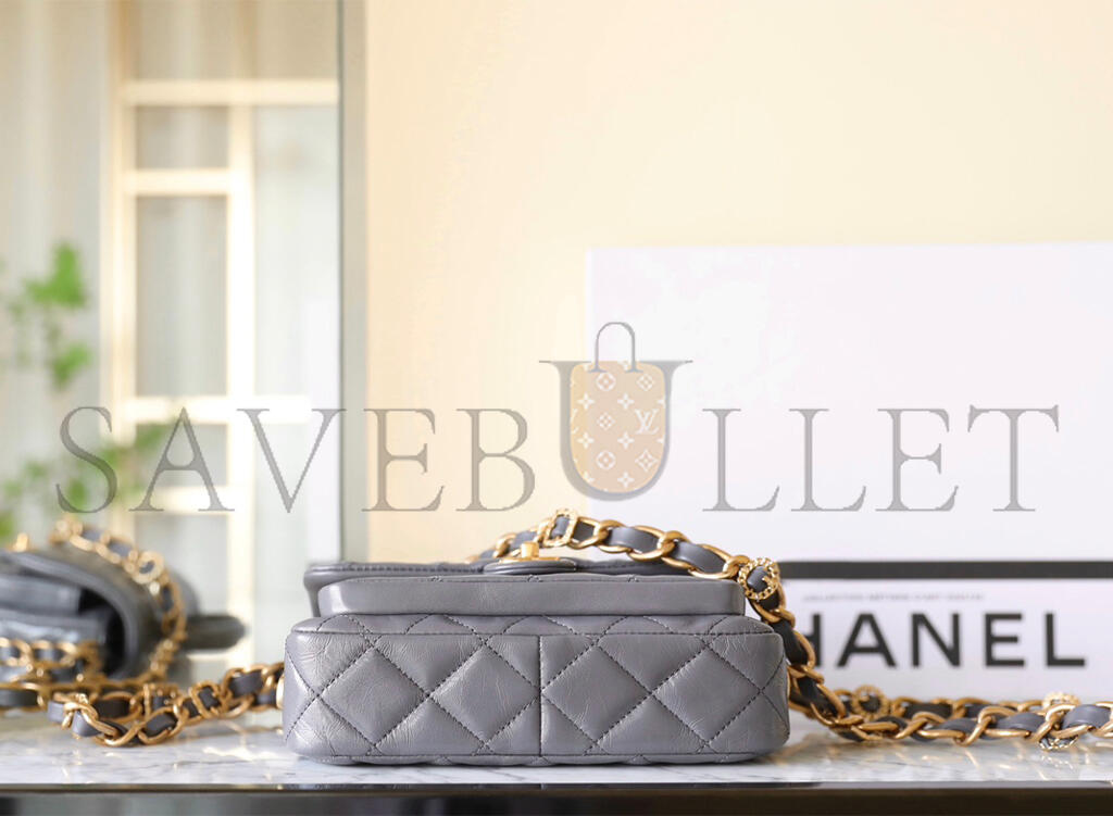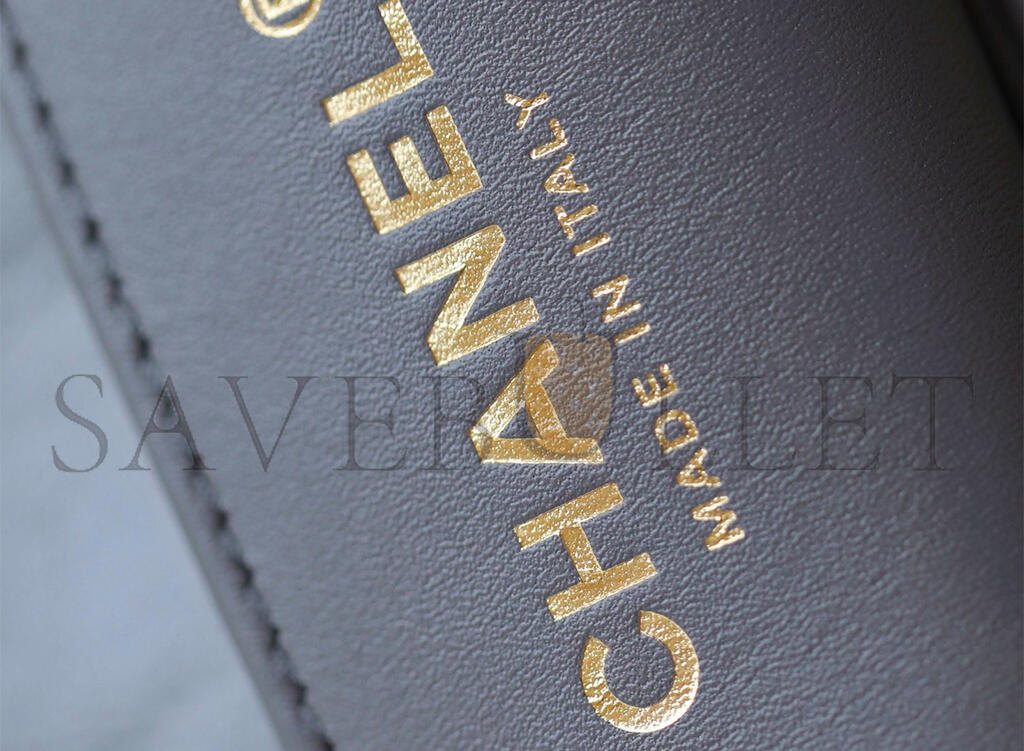 CHANEL MASTER FLAP BAG WITH TOP HANDLE, SHINY LAMBSKIN GOLD-TONE METAL, GREY AS4992 (20*20*7cm)
