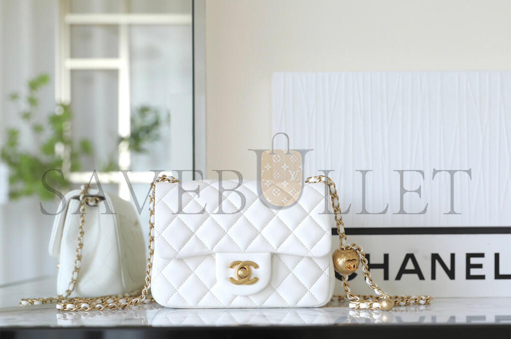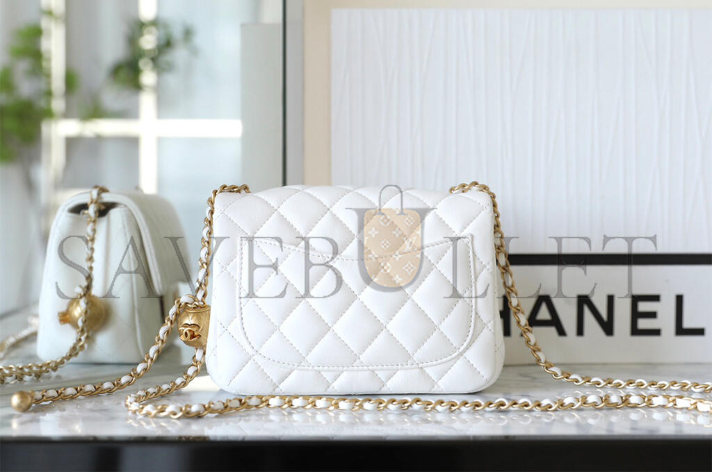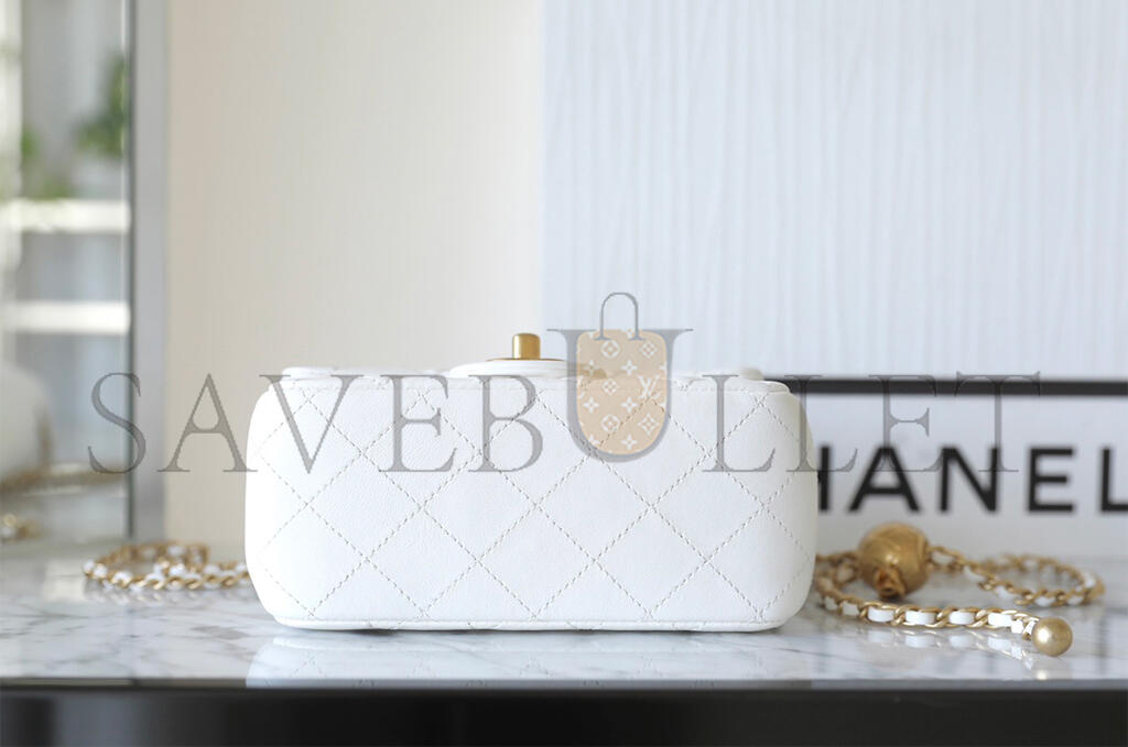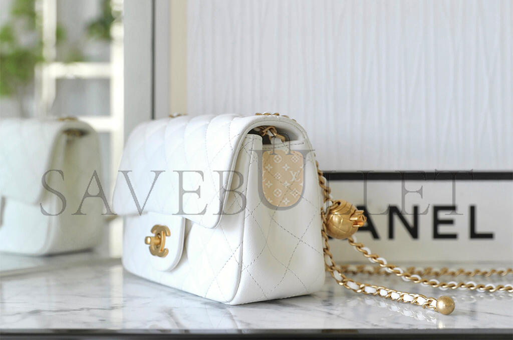 • CHANEL MASTER GOLDEN BALL FLAP BAG FATTY SQUARE WHITE (18*13*7cm)