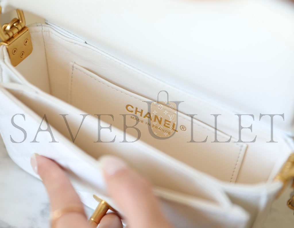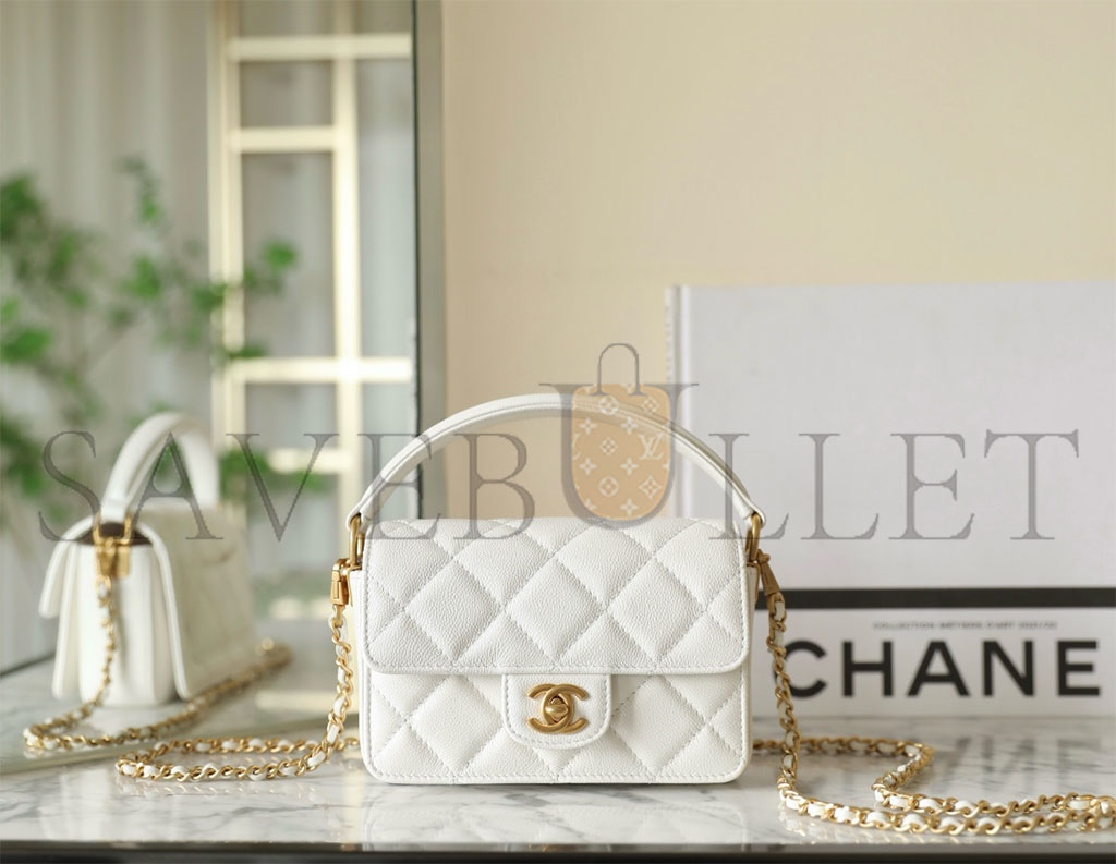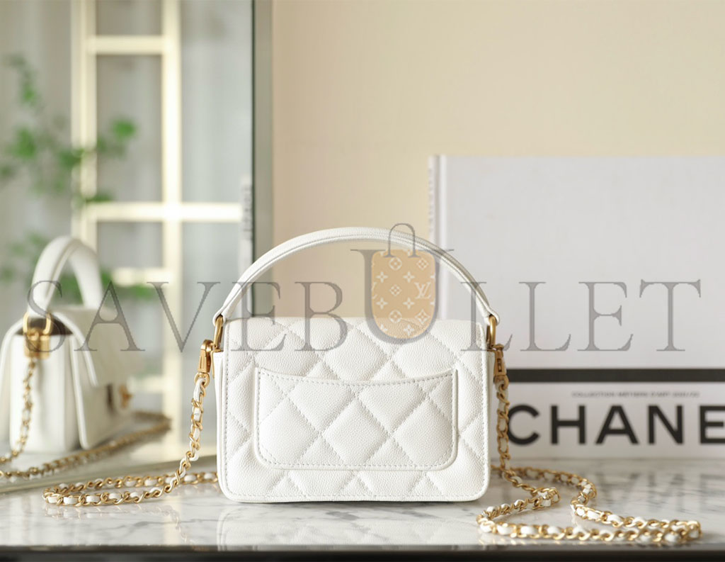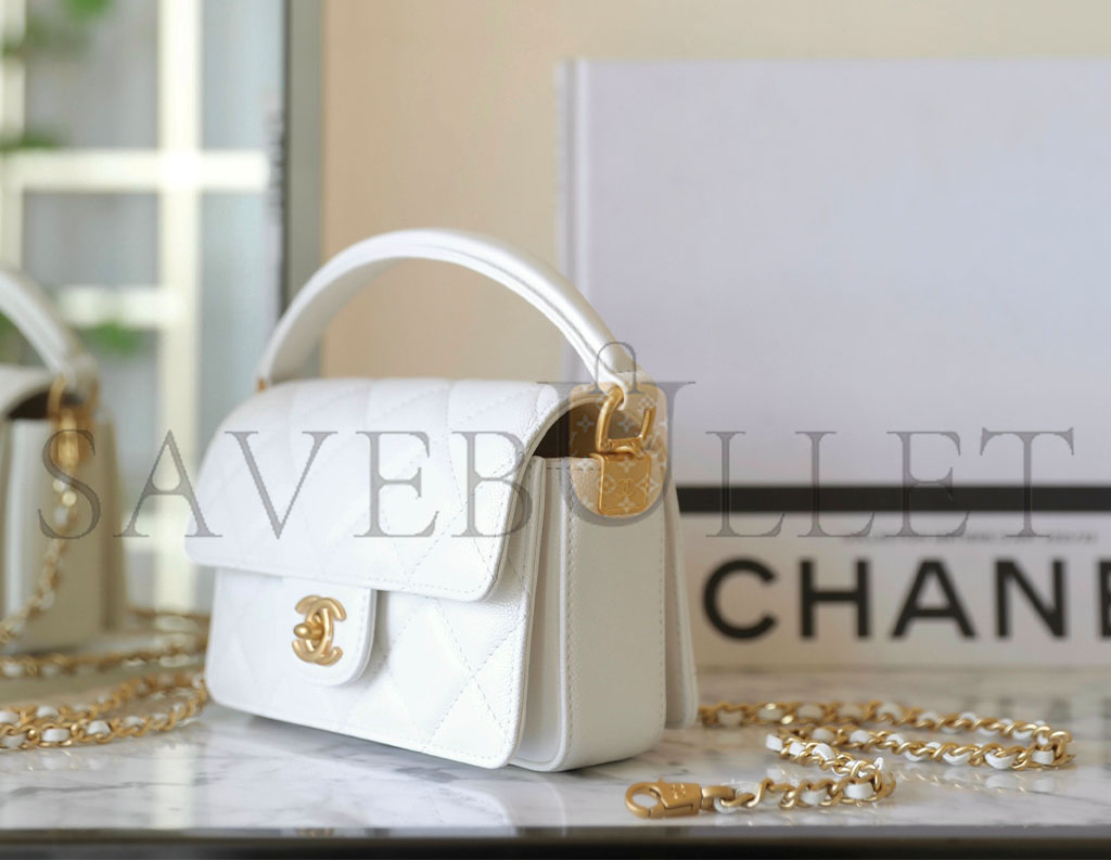 CHANEL MASTER HANDLE FLAP BAG WHITE MINI (16*11*4cm)