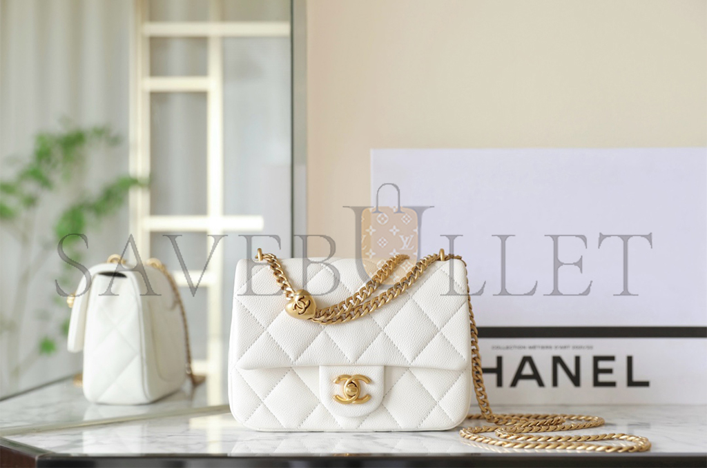 CHANEL MASTER HEART BUCKLE FLAP BAG WHITE MEDIUM (20*14*8cm)