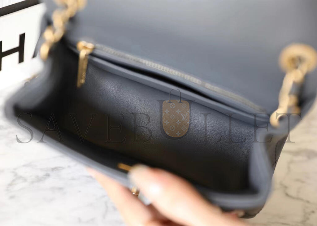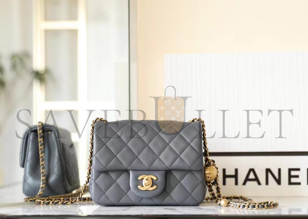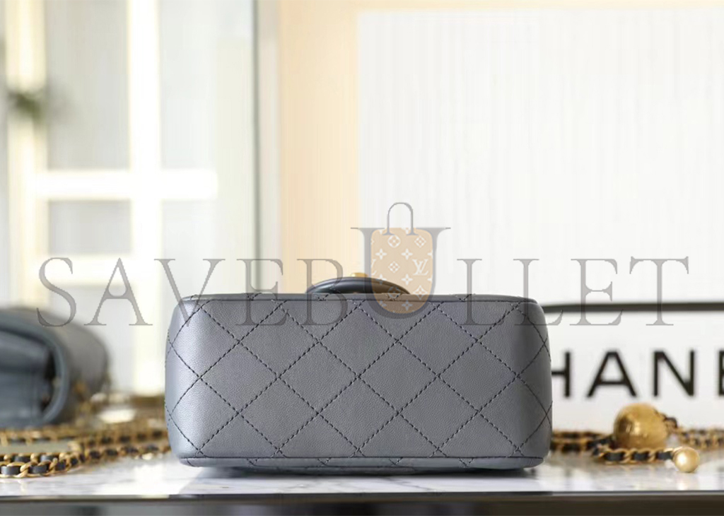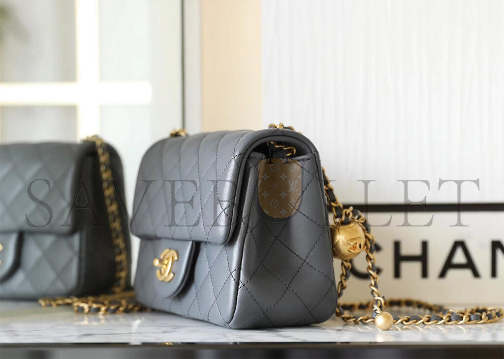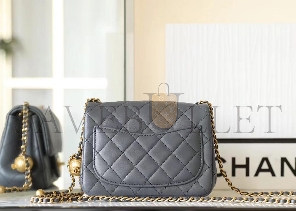 • CHANEL MASTER LAMBSKIN QUILTED MINI PEARL CRUSH FLAP LIGHT GREY (18*13*7cm)