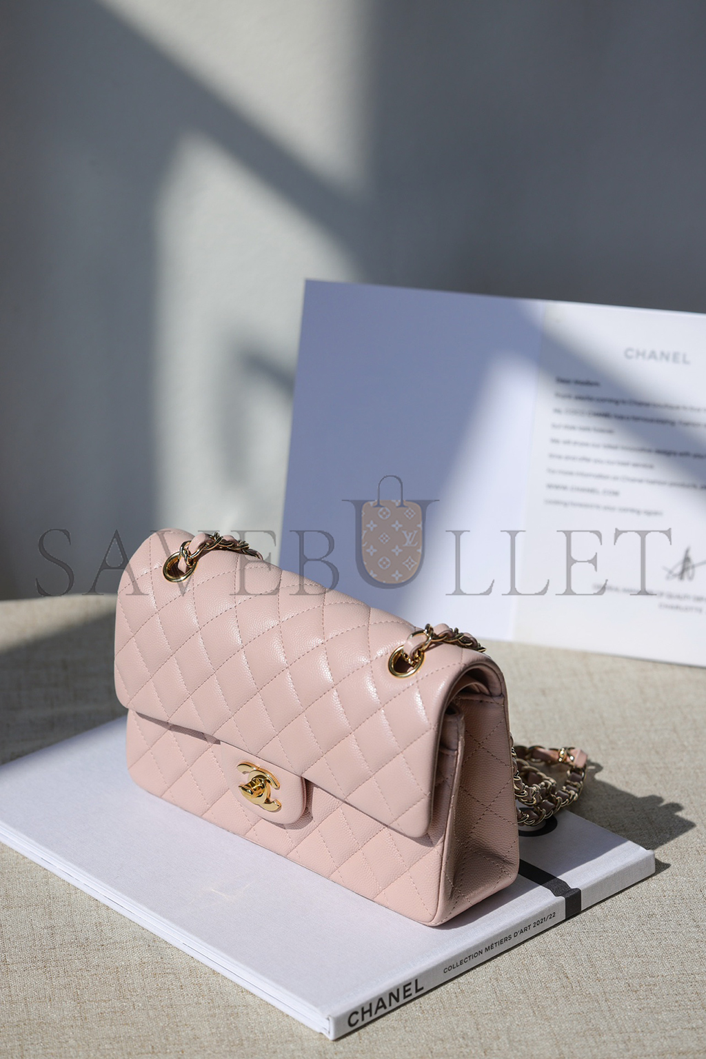 • CHANEL MASTER PINK QUILTED CALFSKIN SMALL DOUBLE FLAP GOLD HARDWARE A01113 (23*14.5*6cm)