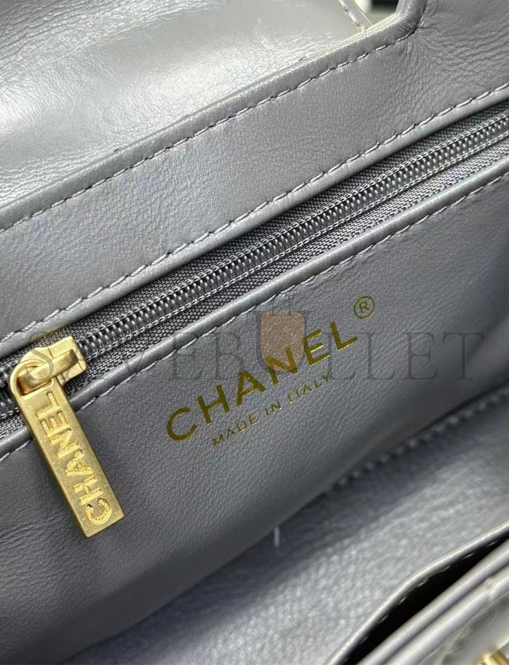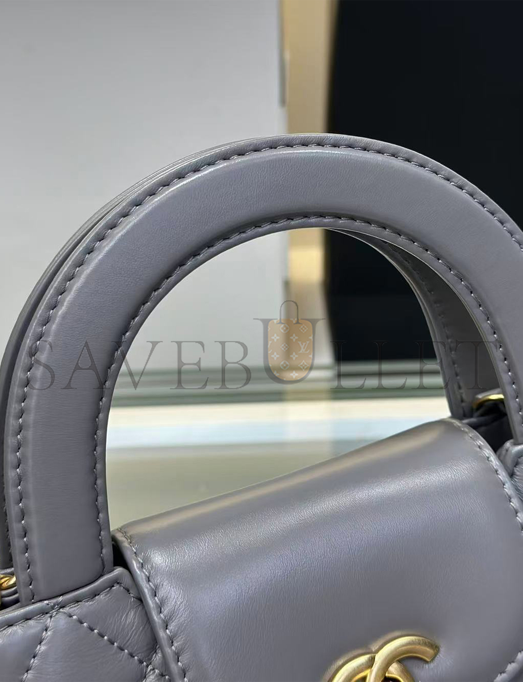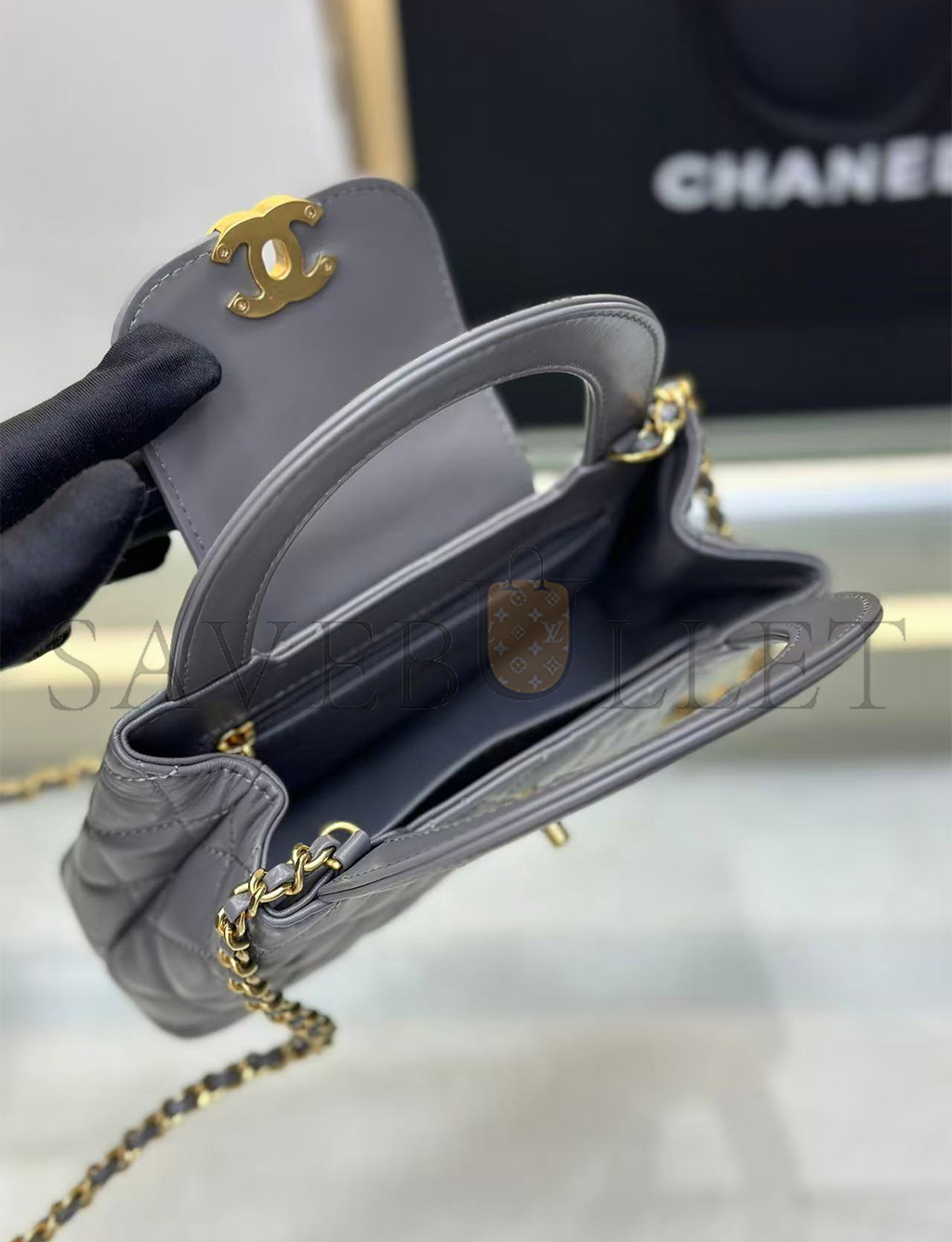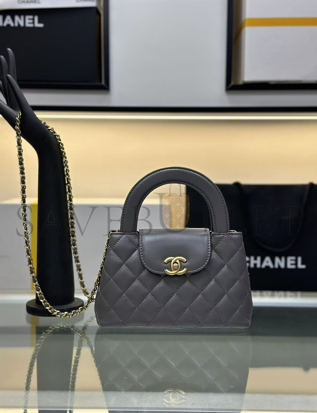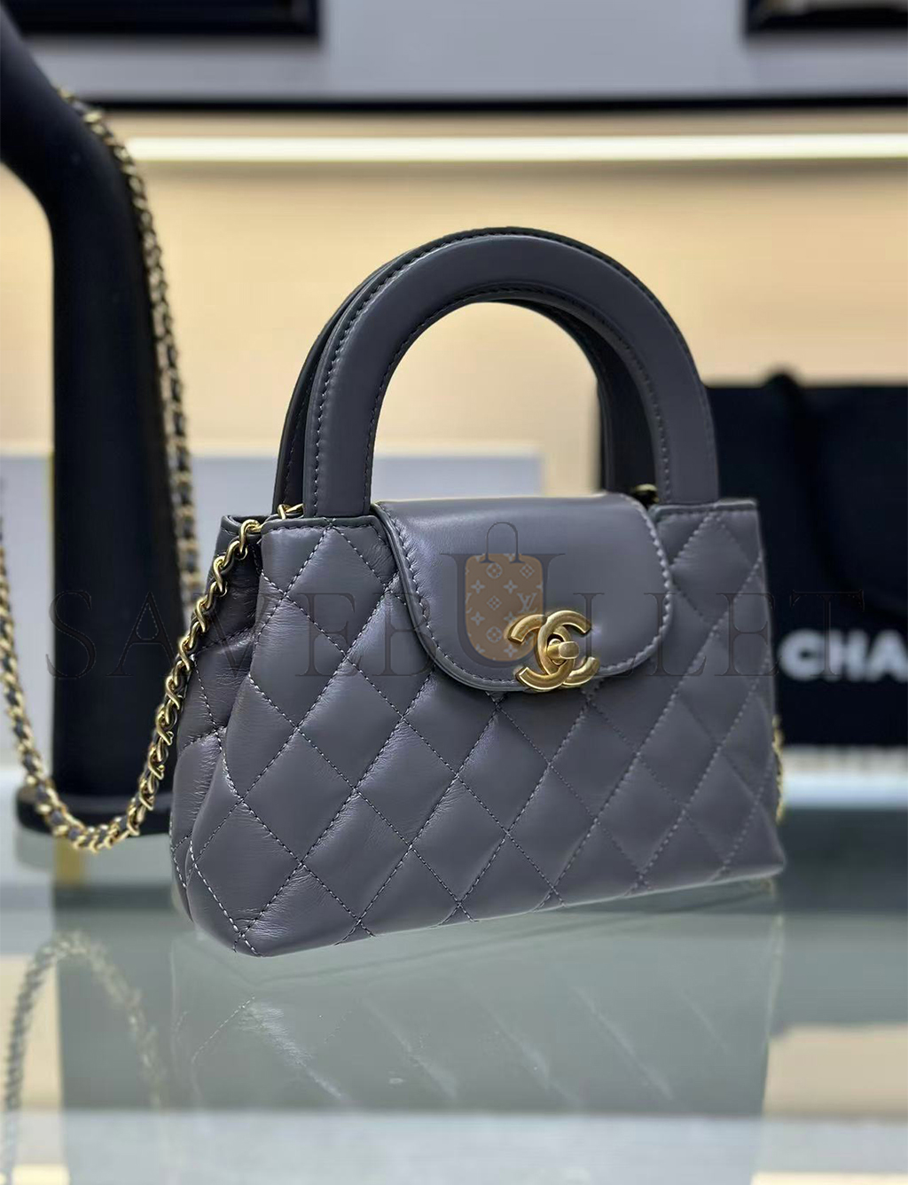 • CHANEL GREY QUILTED CALFSKIN MINI KELLY BRUSHED GOLD HARDWARE AS4416 (19*13*7cm)