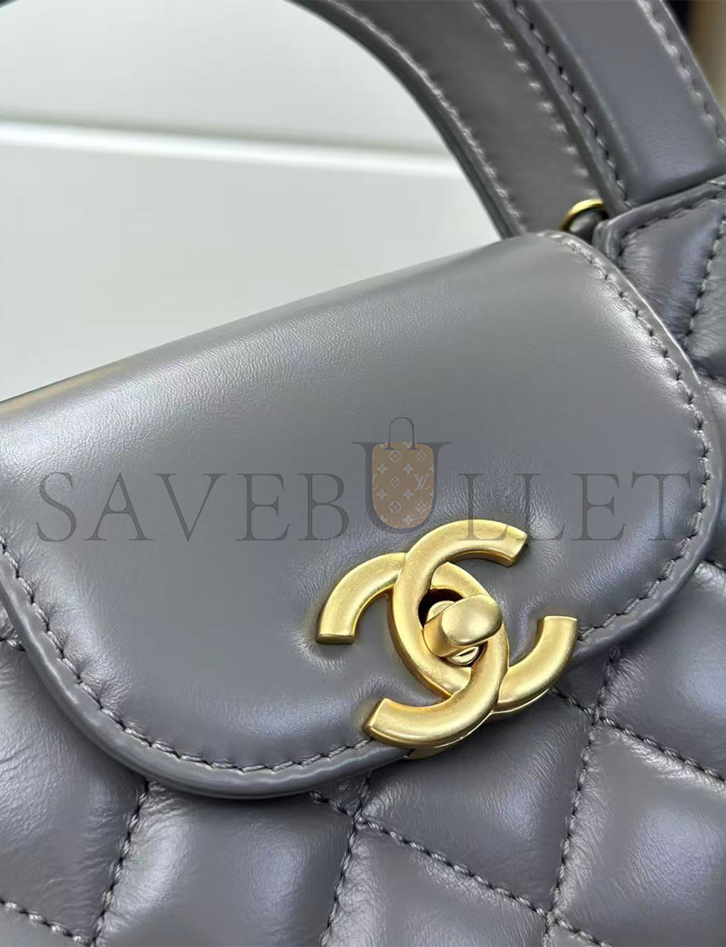 CHANEL GREY QUILTED CALFSKIN MINI KELLY BRUSHED GOLD HARDWARE AS4416 (19*13*7cm)