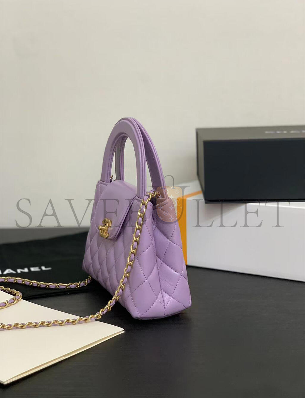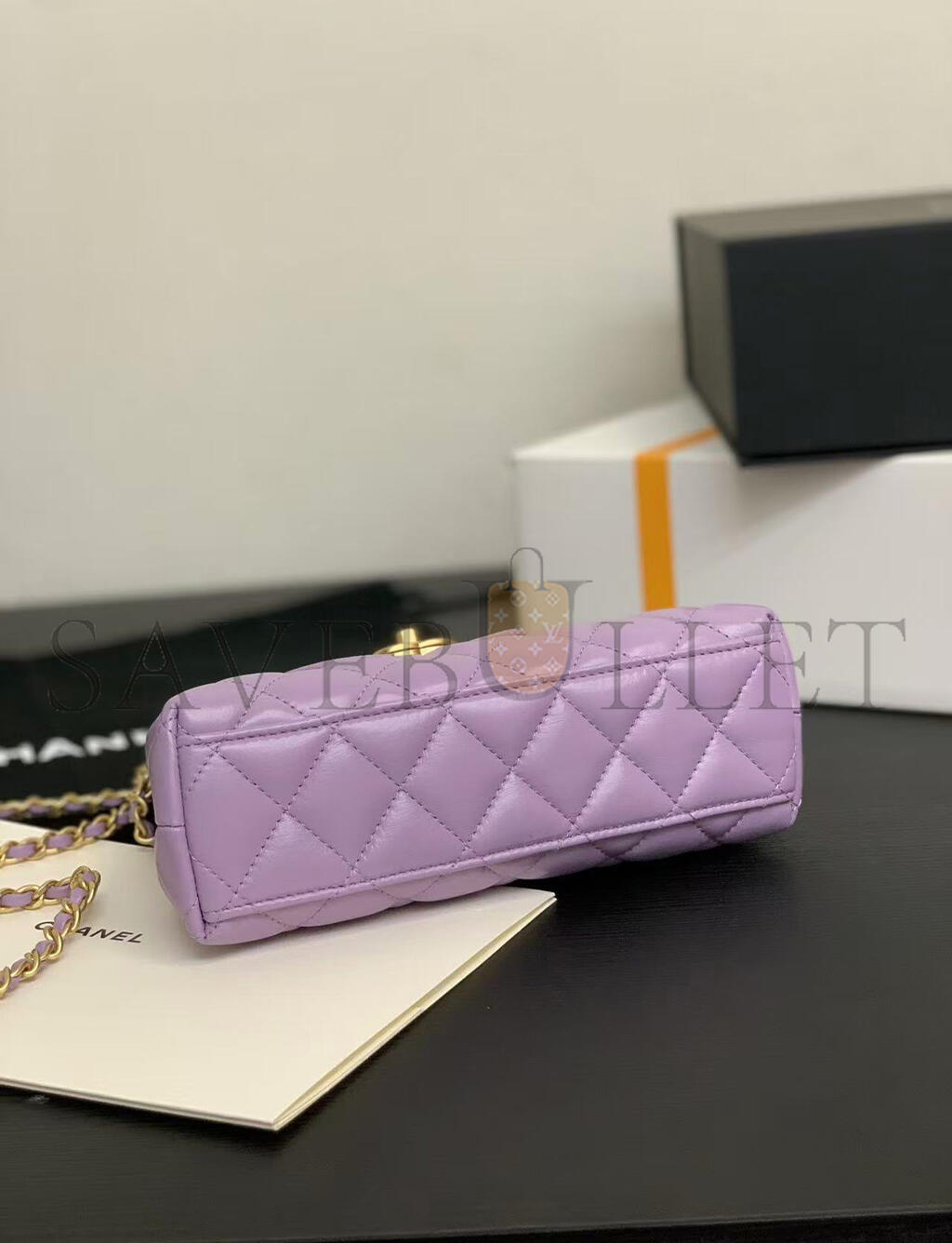 • CHANEL MASTER PURPLE QUILTED CALFSKIN MINI KELLY BAG GOLD HARDWARE AS4416 (19*13*7cm)