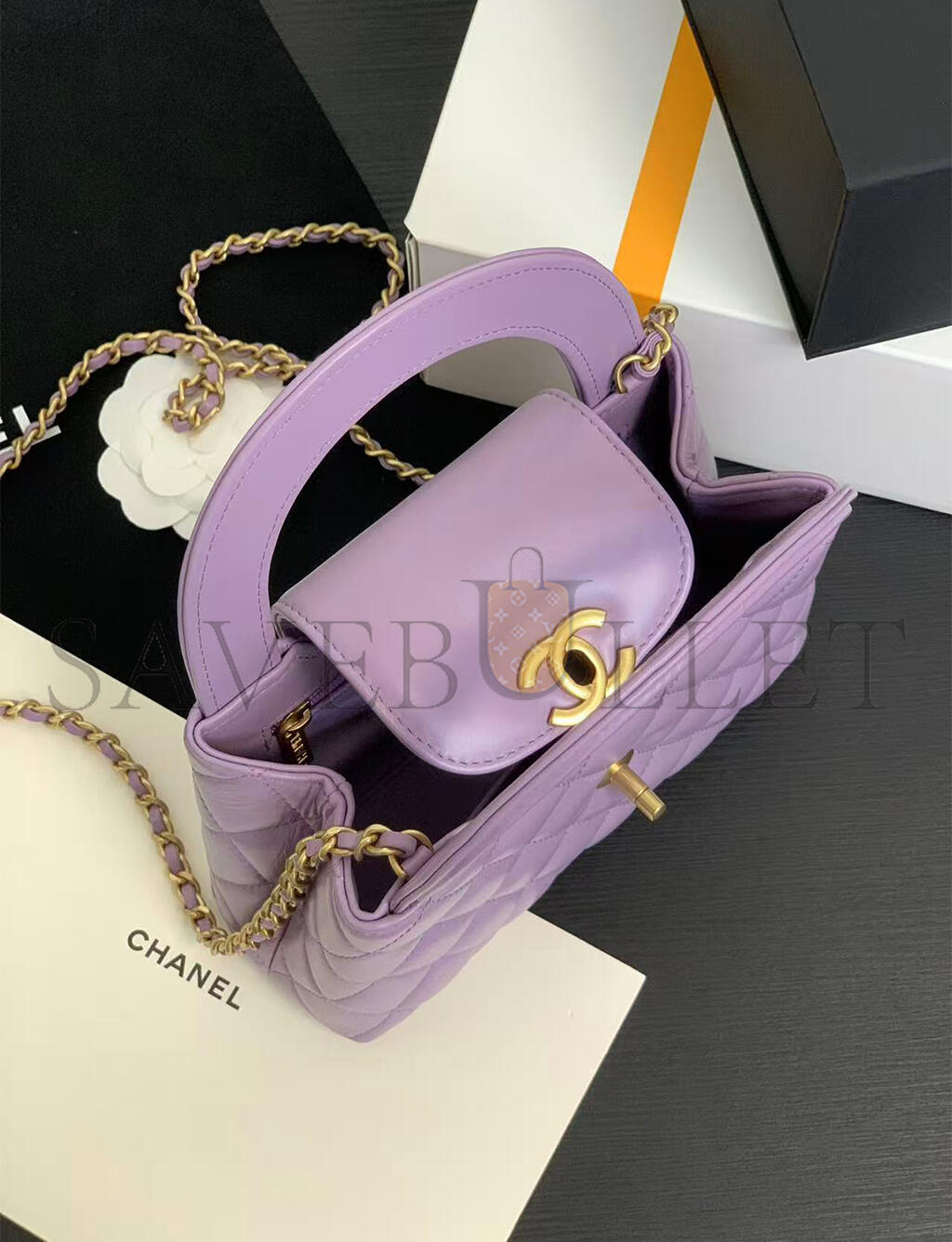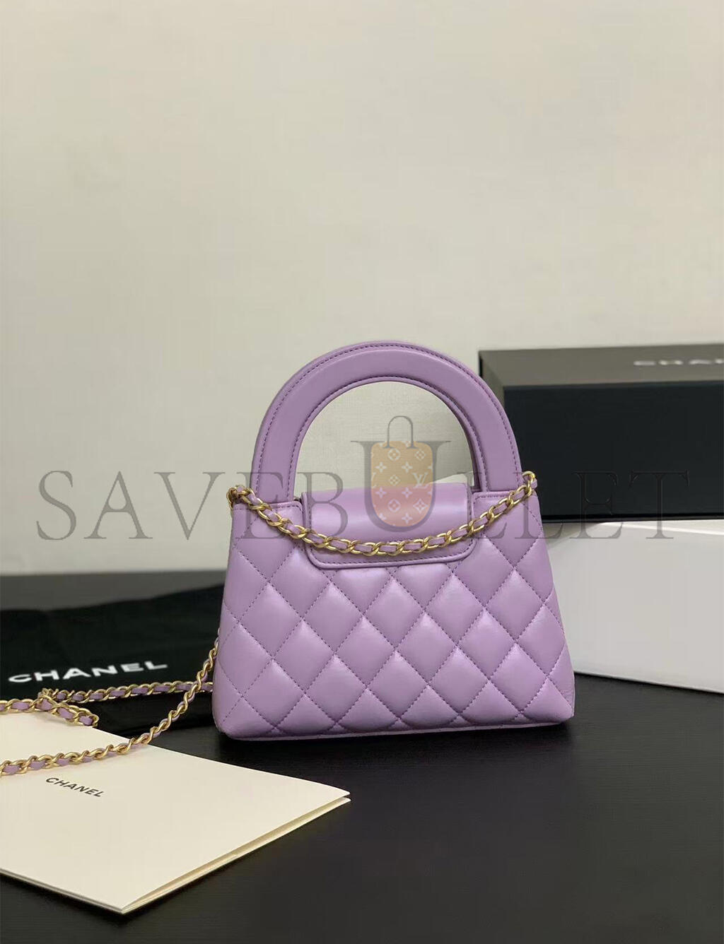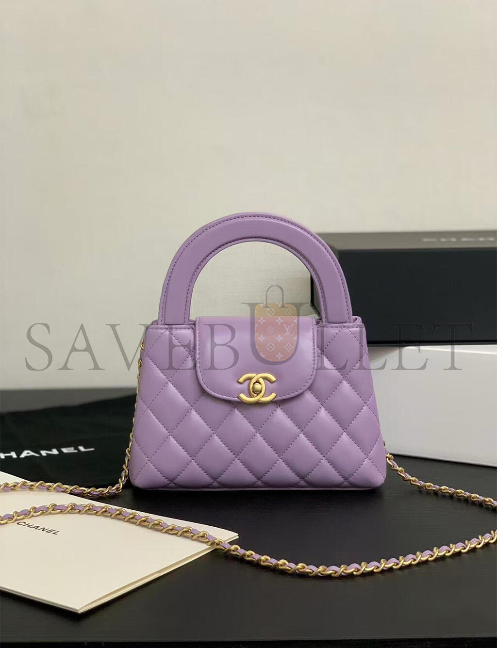 CHANEL MASTER PURPLE QUILTED CALFSKIN MINI KELLY BAG GOLD HARDWARE AS4416 (19*13*7cm)