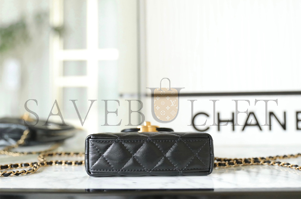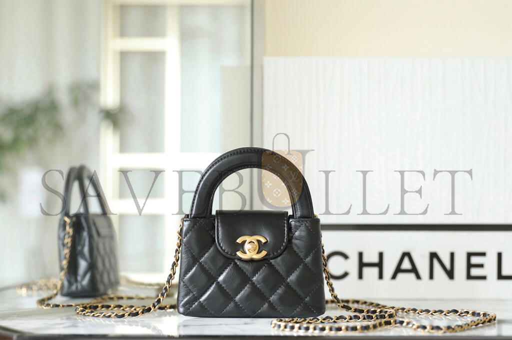 • CHANEL MASTER SHINY CALFSKIN QUILTED MINI NANO KELLY SHOPPER BLACK (12.5*8.3*4cm)
