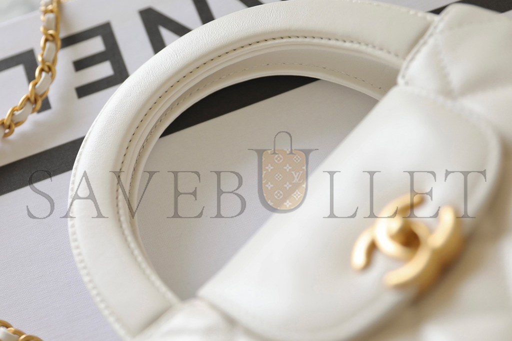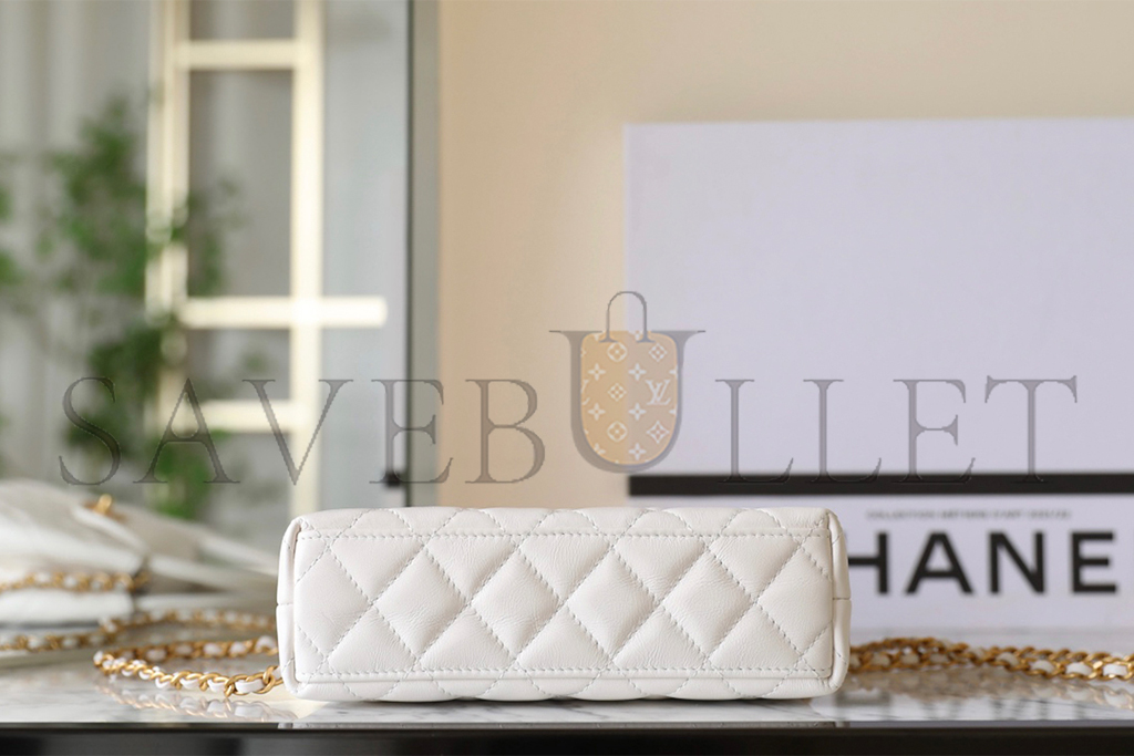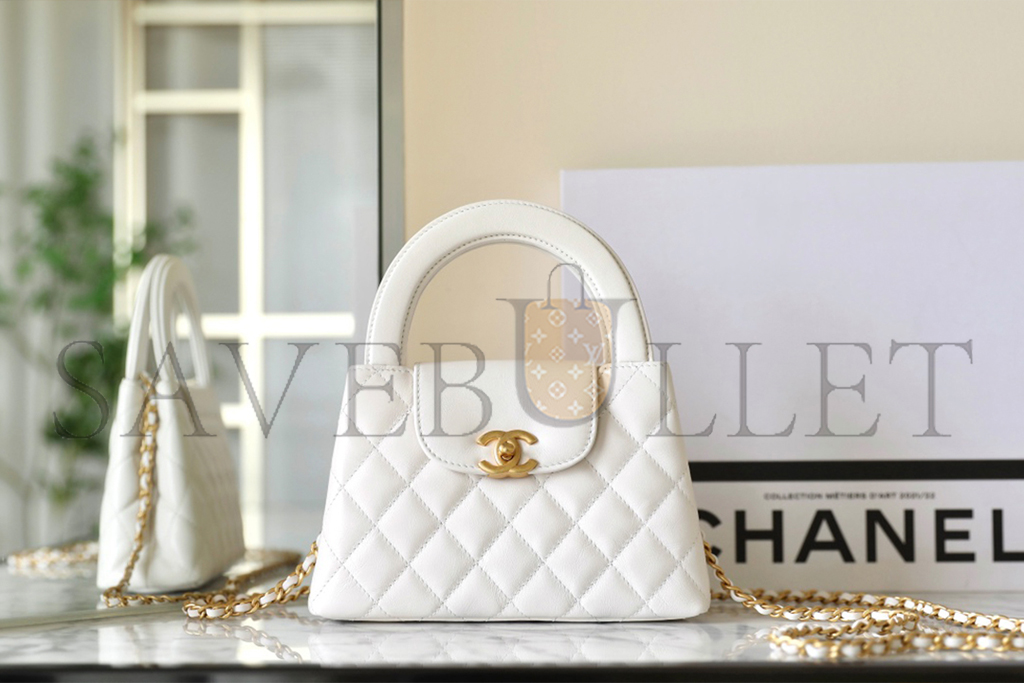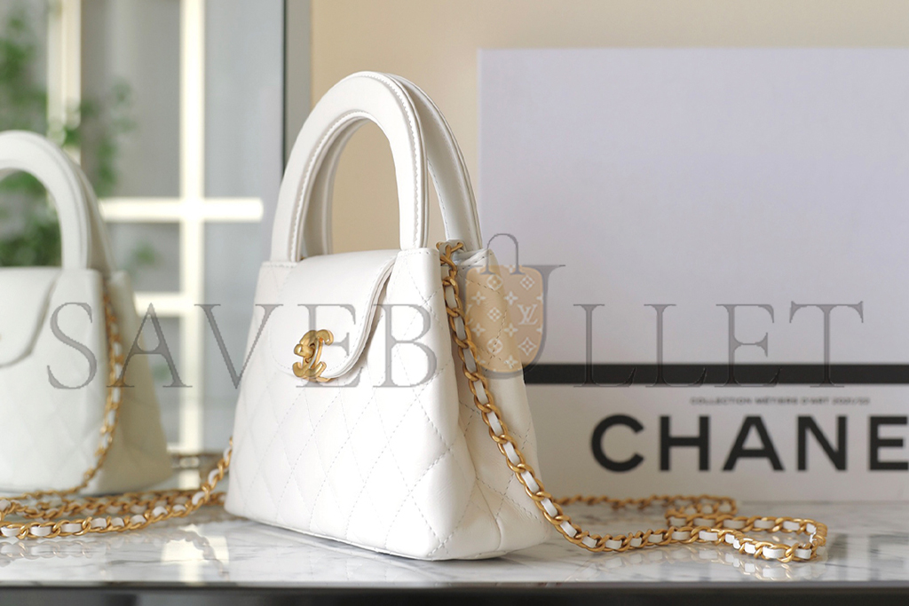 CHANEL MASTER WHITE QUILTED CALFSKIN MINI KELLY BAG BRUSHED GOLD HARDWARE AS4416 (19*13*7cm)