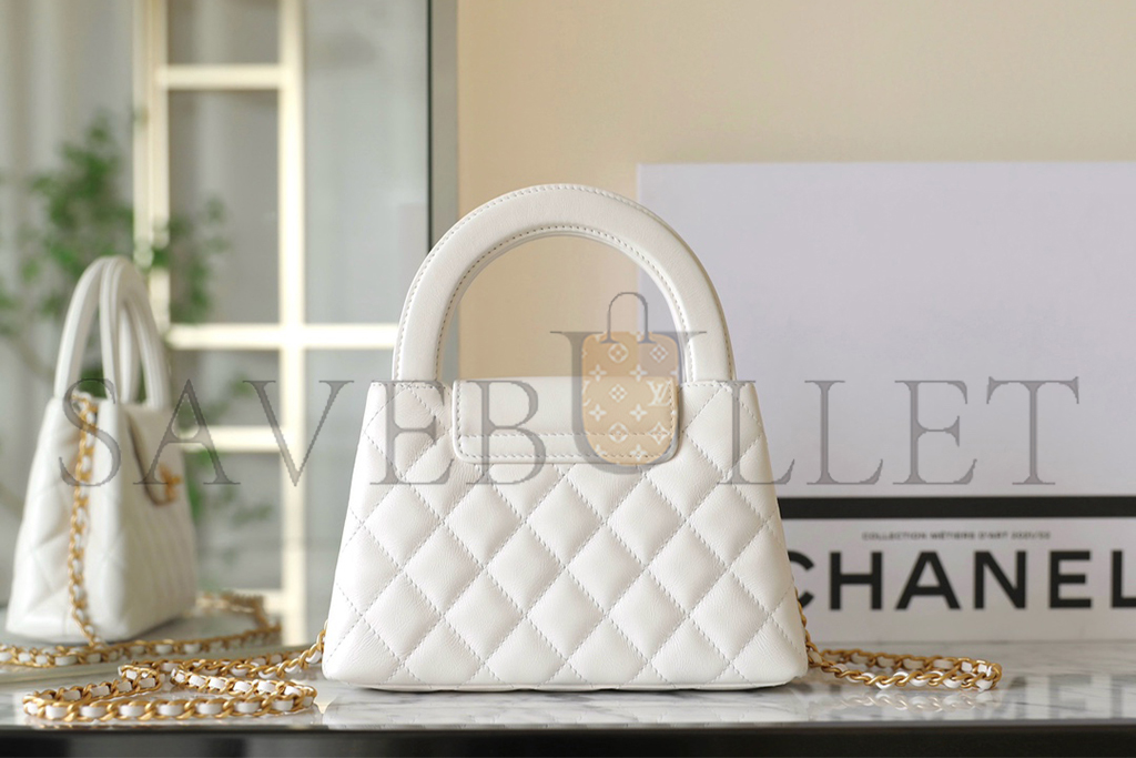 • CHANEL MASTER WHITE QUILTED CALFSKIN MINI KELLY BAG BRUSHED GOLD HARDWARE AS4416 (19*13*7cm)