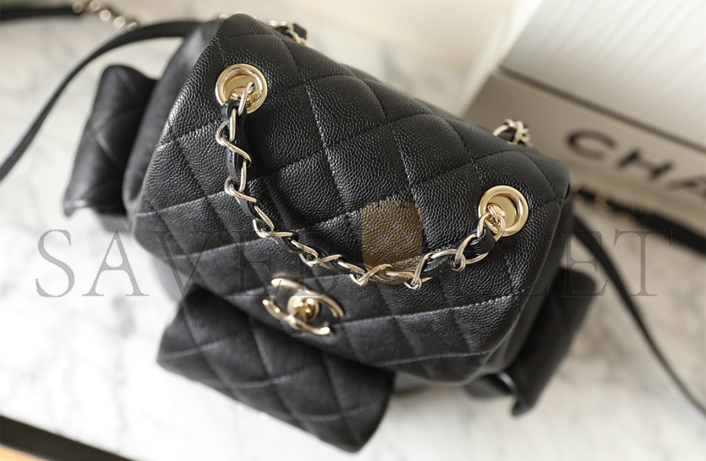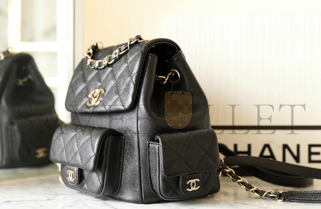 • CHANEL MASTER SHINY CAVIAR QUILTED SMALL POCKETS DRAWSTRING BACKPACK BLACK (21.5*19.5*12cm)