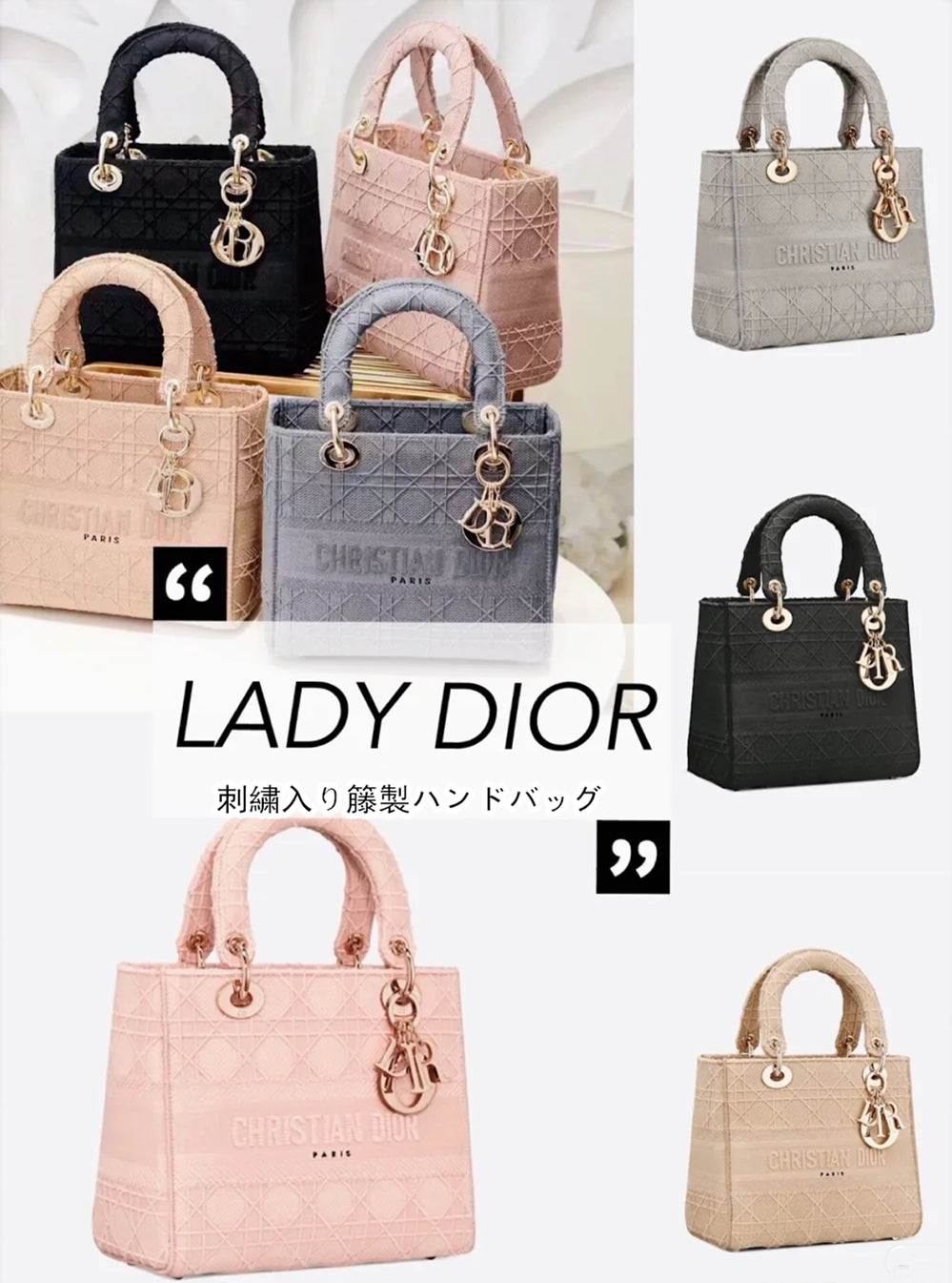 「LadyD-Lite」バッグは、ディオールのエレガンスと美しさのビジョンを体現しています。 モダンでありながら時代を超越した、洗練されたフェミニンなバッグ。 ベージュの「Cannage」の完全刺繍キャンバスと、前面の「Dior」ロゴの繊細な仕上げが、存在感を際立たせています。 シグネチャーの「DIOR」チャームが淡いゴールドで輝き、シルエットを引き立てます。 取り外し可能なショルダーストラップとフル刺繍のミディアムサイズ。