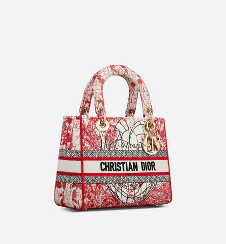 「amour (ディオールアムール)」カプセルコレクションより、クラシックなエレガンスとディオールのモダニティを併せ持つ「Lady D-Lite(レディ D-ライト)」バッグ。アーティスト ピエトロ・ルッフォに着想を得た、レッドとホワイトの「D-Royaume d'Amour (D-ロワイヨム ダムール)」モチーフの刺繍を全面にあしらいました。フロントに“クリスチャン・ディオール”シグネチャーをあしらい、ボリューム感のあるペールゴールドトーン メタルの“”チャームが魅力的なシルエットを引き立てます。幅広でリバーシブルの刺繍入りショルダーストラップは取り外すことができ、手提げスタイルはもちろん、ショルダーバッグやクロスボディバッグとしてもお使いいただけます。「ディオールアムール」の他のアイテムと組み合わせてもお楽しみいただける、ミディアムサイズのモデルです。