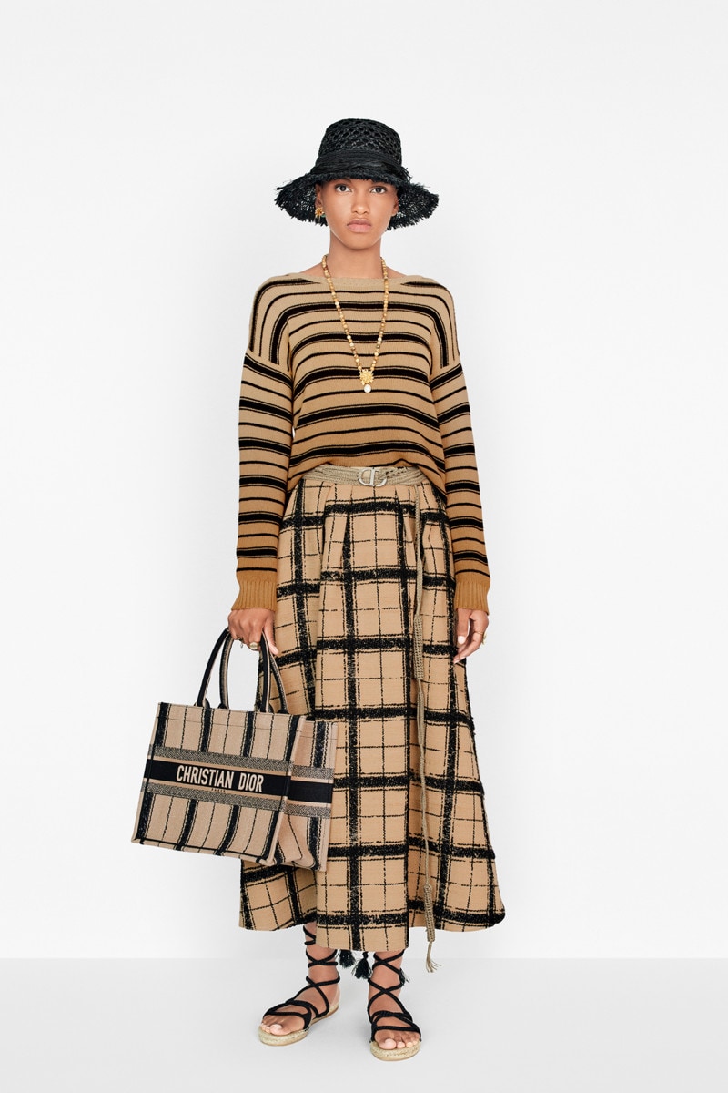 クリスチャン ディオールのアーティスティック ディレクター マリア・グラツィア・キウリが発表した“「ディオールブックトート」(ディオール ブック トート)”は、ディオールの美意識を語る上で今や不可欠なスタイル。日々の必需品を全て持ち歩くのに理想的なスモールサイズ。ルレックスで全面に刺繍を施し、バヤデール プリントを表現。フロントにはシグネチャーの“クリスチャン ディオール”をデボス加工であしらいました。ディオールのサヴォワールフェールが凝縮されたバッグ。他のアクセサリー小物や“Mitzah(ミッツア)”スカーフと合わせてルックが完成。