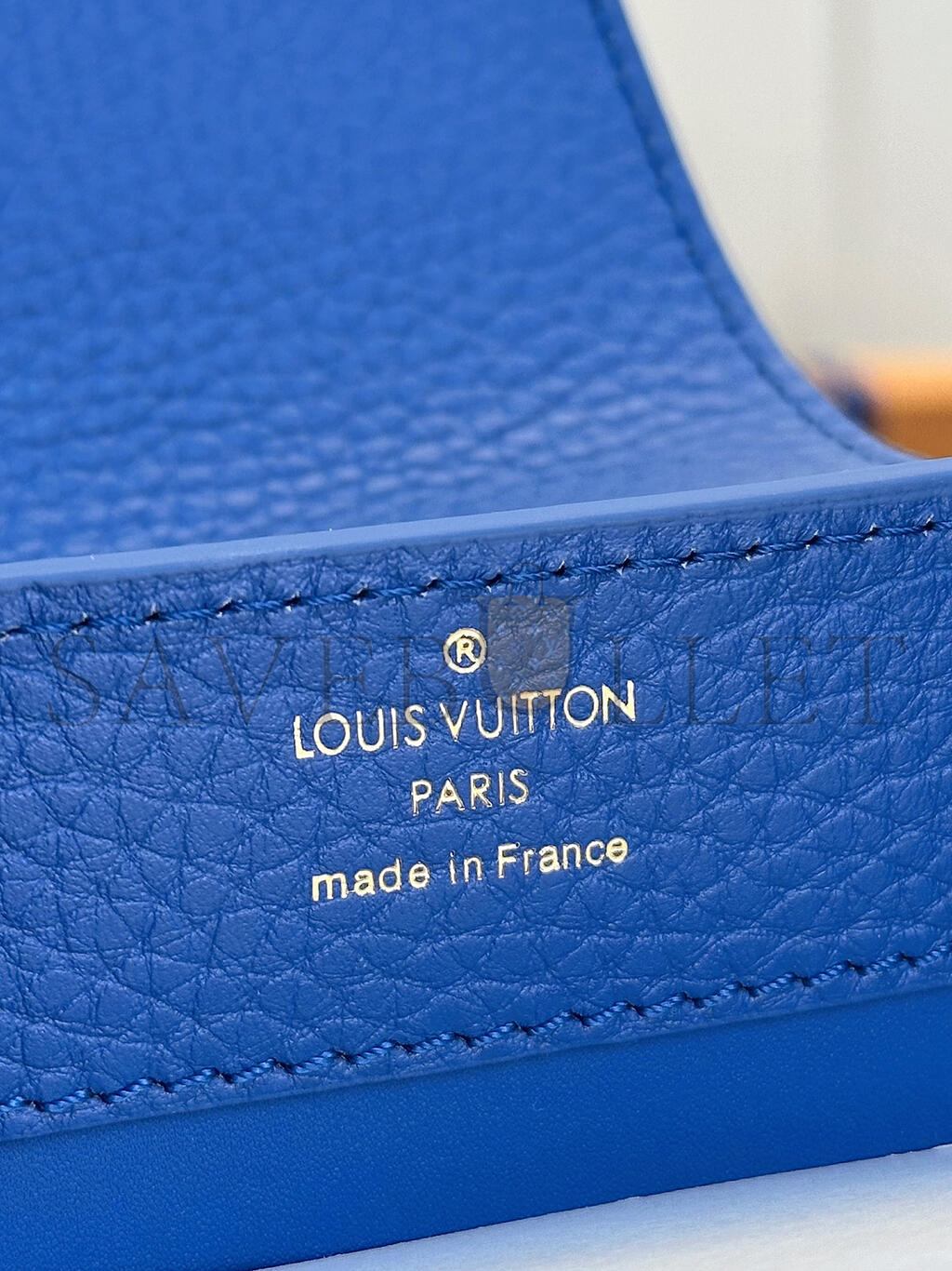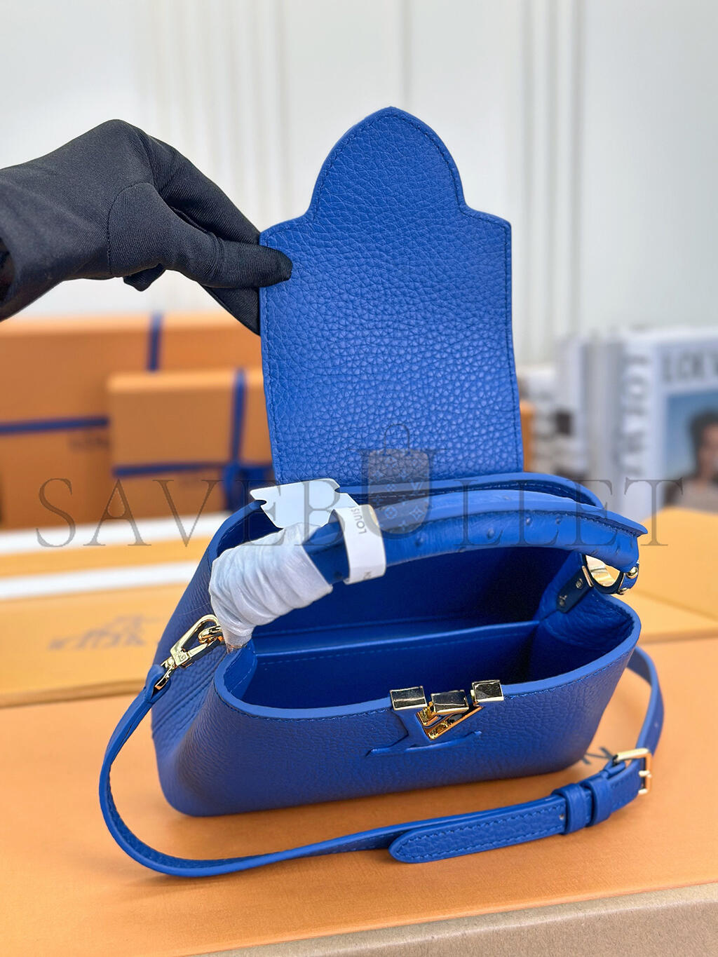 Gold-color and leather-finish hardware