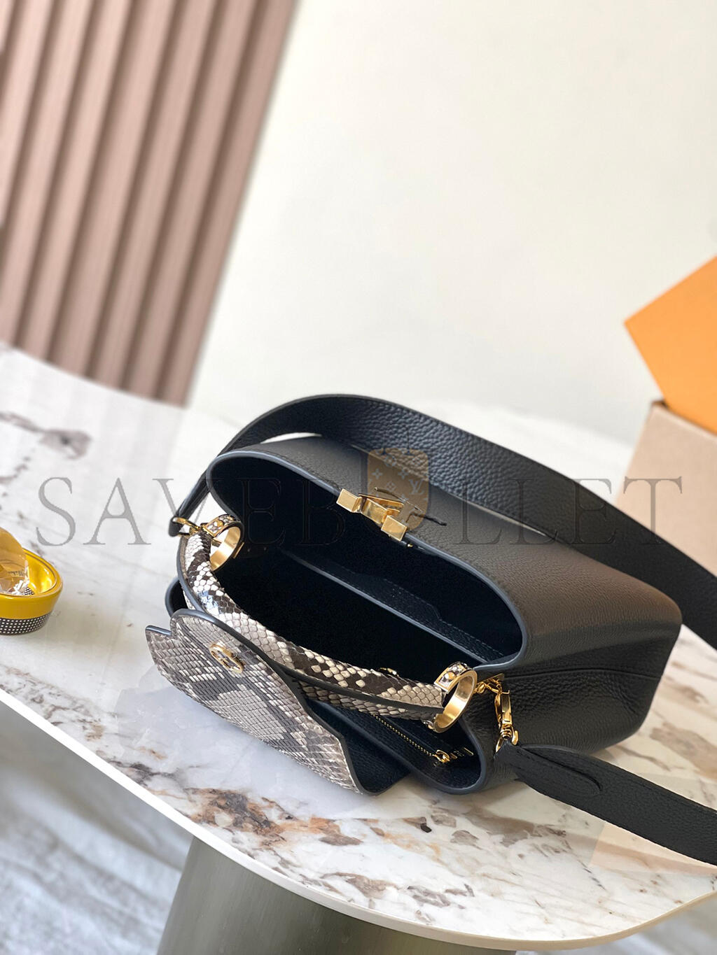 Taurillon-leather and python-skin trim