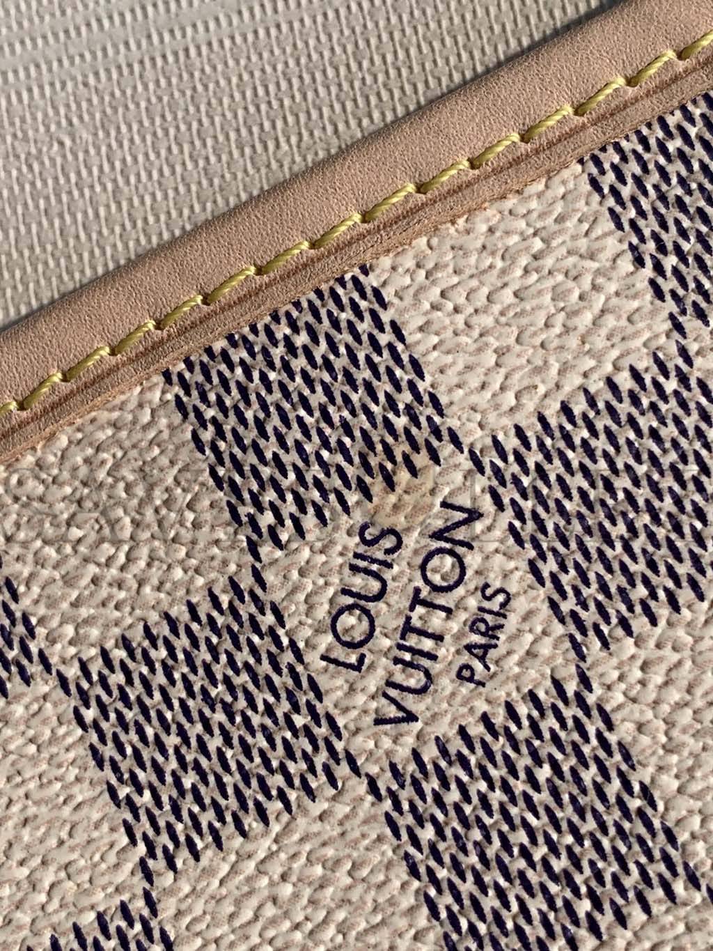 The Neverfull PM tote pairs timeless design with heritage details. Crafted from Damier Azur canvas with natural cowhide trim, it is capacious yet not bulky, with side laces that cinch for a sleek allure or loosen for a casual look. Slim, comfortable handles slip easily over the shoulder or arm. Lined in colorful textile, it features a removable pouch which can be used as a clutch or an extra pocket.
